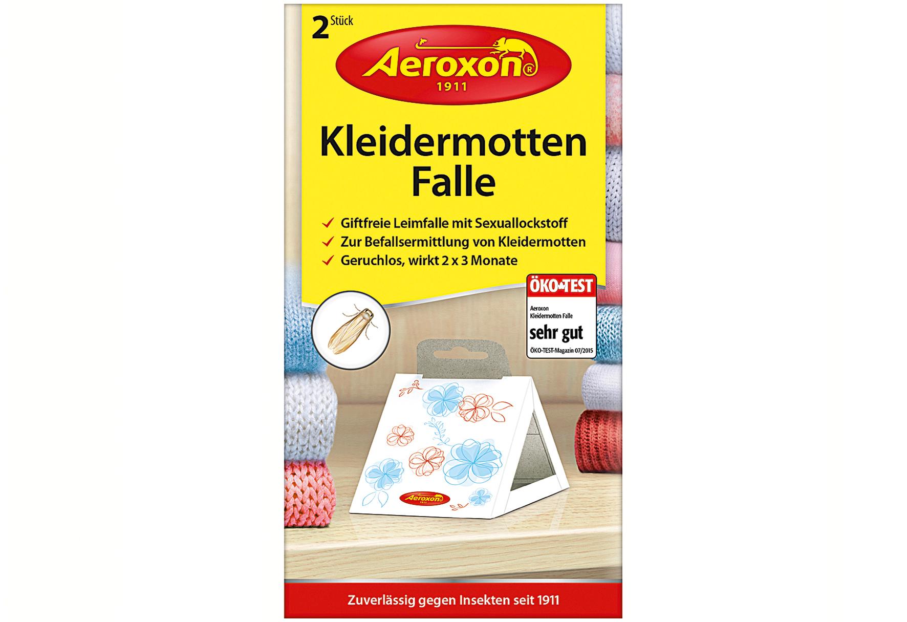 Giftfreie, geruchlose und anwendungsfertige Monitor-Lockstofffalle zur Befallsermittlung von Kleidermotten an Textilien, Pelzen, Teppichen, Vorhängen, Polstermöbeln, Matratzen und anderen Stoffen. Pro Falle ca. 3 Monate wirksam. Wirkungsweise: Der Fangeffekt wird durch im Leim eingearbeitete, artspezifische Pheromone erzielt, die ausschließlich auf Kleidermotten wirken. Männliche Motten werden angelockt und durch den Leimauftrag zuverlässig festgehalten. So ist es möglich, einen Mottenbefall festzustellen bzw. zu lokalisieren. Wirkstoffe: Sexuallockstoffe (Pheromone), Leim