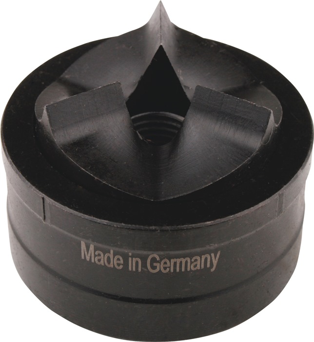 Spalt-Blechlocher · zum schnellen, gratfreien Stanzen von runden Löchern in Stahlbleche S235 · Materialstärke bis 3 mm · für Kabel-Verschraubungen mit PG- und metrische Gewinde und Sanitärarmaturen · durch 3-fach Spaltung kein verklemmen des Abfallstücks in der Matrize · Zugschraube mit UNF-Feingewinde · Bedienung der Zugschraube mittels Schraubenschlüssel · ideal für Schaltanlagenbauer, Elektriker, Installateure, Industrie und Handwerk · mit wenigen Handgriffen dünnwandige Materialien schnell, mühelos, sauber und gratfrei lochenWeitere technische Eigenschaften: