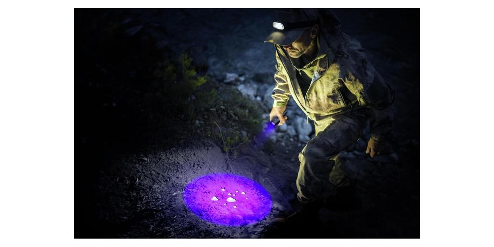 handliche LED-Aluminiumtaschenlampe mit UV Licht · UV Licht ideal geeignet für Bernsteinsuche, Hygiene und Sauberkeitskontrollen und zur Ködersuche im Angelsport · LED Taschenlampe ist optimal geeignet für den täglichen Gebrauch · sehr griffige Oberfläche mit Endkappenschalter · Helligkeit: bis zu 100 Lumen · UV Wellenlänge 395 - 400 nm · Leuchtdauer: bis zu 27 StundenLieferumfang: 3 × Micro AAA / LR03 Batterien, Gürtelclip und Handschlaufe