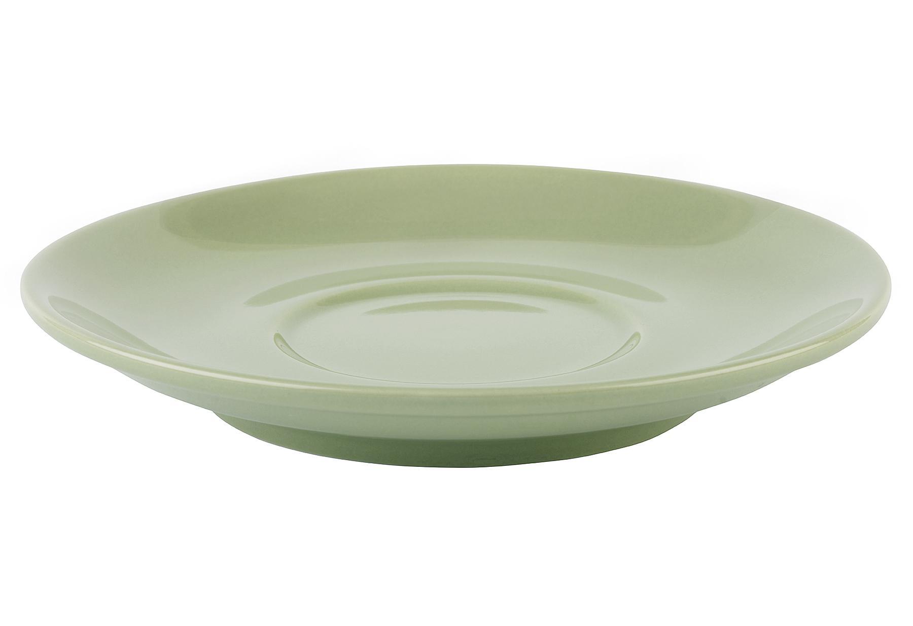 Hochwertige Cappuccinountertasse aus Porzellan. Spülmaschinengeeignet. Farbe: grün. Maße: Ø 15,5 cm, H 2,5 cm.Lieferumfang: