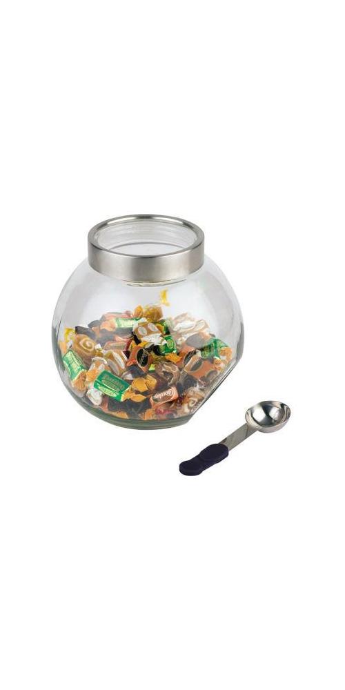 APS Vorratsdose 20 x 18 cm (D. x H) 2,2l inkl. Edelstahl-Löffel mit magnetischem Silikongriff Glas/Edelstahl transparent