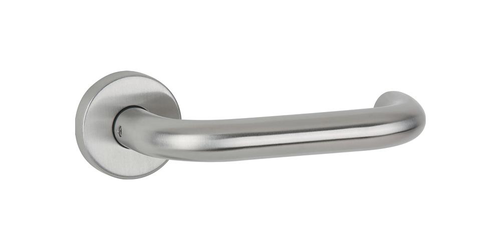 Edelstahl matt · 8 mm Vierkantstift · geprüft nach EN 1906 Klasse 3 · geeignet für DIN links / rechts · Türdrücker lose gelagert in Kunststoff-Unterkonstruktion · montagefreundliches Rosettensystem durch intelligente Vormontage von Cliprosetten und Drückerstiften · beidseitig wirkende Hochhaltefeder, rechts und links verwendbar · getrennte Montage von Rosetten und Drückerpaaren · passend für Türstärke 38−45 mmWeitere technische Eigenschaften: