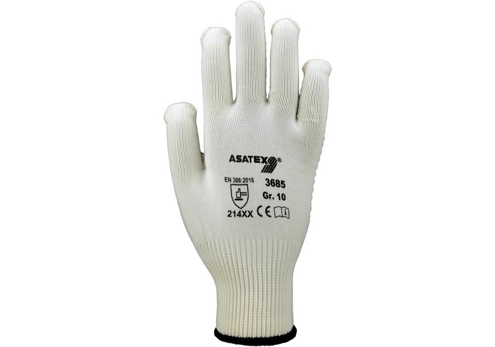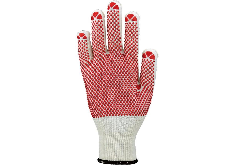 nach EN 388 · Kat. II · Material: blattiert, innen Baumwolle, außen Polyamid · mit rutschhemmender Punktbenoppung · ausgezeichnete Passform · gute Griffsicherheit · angenehmer Tragekomfort · mit nahtlosem Strickbund · Anwendung: leichte bis mittelschwere mechanische Tätigkeiten, Kunststoffverarbeitung, AutomobilbereicheWeitere technische Eigenschaften: