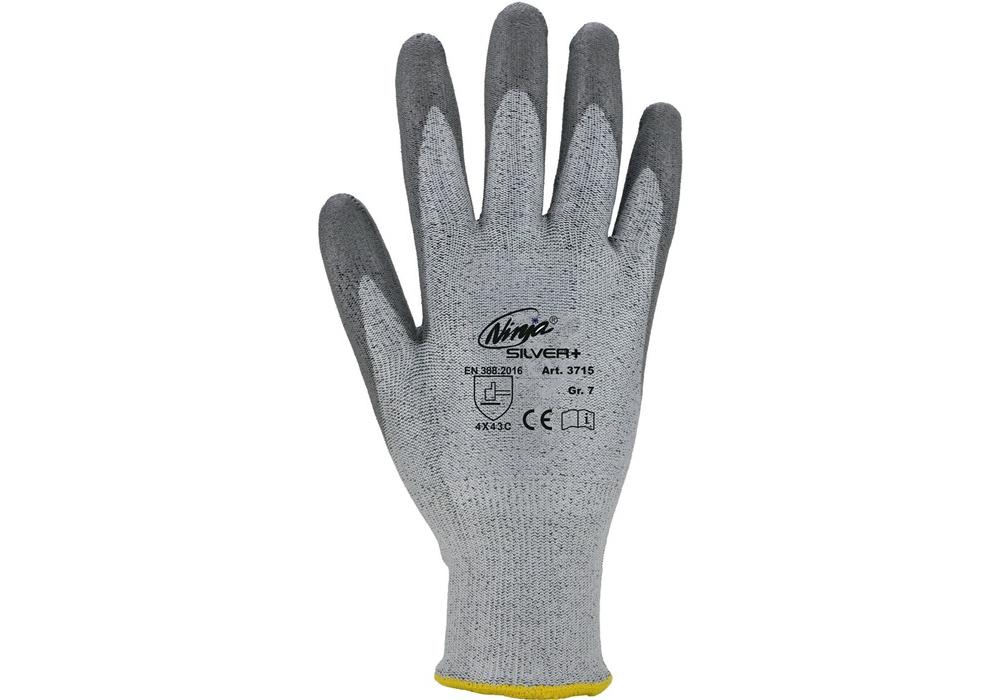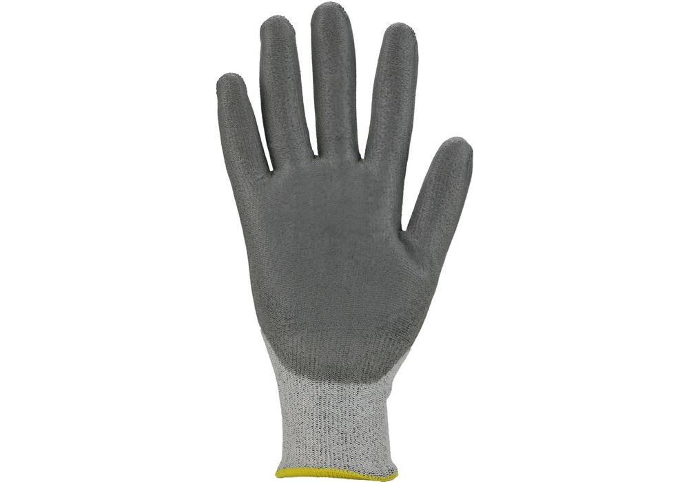 nach EN 388 · Kat. II · Material: Polyethylen (HPPE) / Polyamid / Glasfaser / Elastan · Schnittschutzlevel C · graue PU-Beschichtung · gutes Tastempfinden · gute Griffigkeit · Anwendung: für präzise Tätigkeiten im Hightech-Bereich, Glasindustrie, Elektroindustrie, Reinraum- und Pharmaindustrie, Automobilbau, Metallverarbeitung, MontageWeitere technische Eigenschaften: