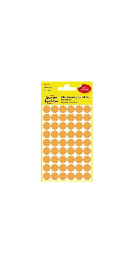 AVERY Zweckform Markierungspunkt 12mm Papier leuchtorange 270 Etik./Pack.
