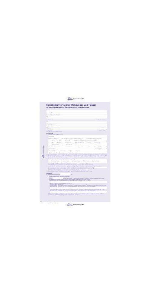 Egal ob Sie Mieter oder Vermieter sind · mit einem Mietvertrag von Avery Zweckform sind Sie auf der sicheren Seite. Der Einheitsmietvertrag für Wohnungen und Häuser wurde von Rechtsexperten erstellt und wird regelmäßig an die Änderungen im Mietrecht angepasst. Der in Blau gehaltene Mietvertrag regelt alle wichtigen Punkte des Mietverhältnisses inklusive der Schönheitsreparaturen. Zudem enthält der 5-seitige Mietvertrag eine Mietobjektbeschreibung · Übergabeprotokoll und Hausordnung.Attribute
