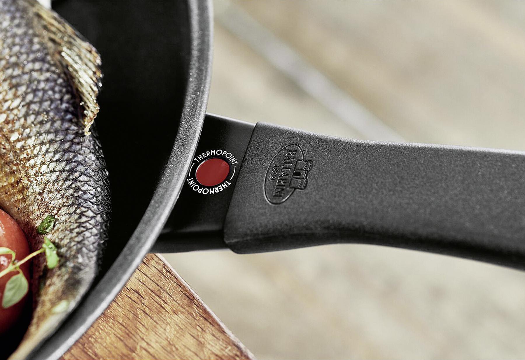 Wenn der Weg in die Küche zur Italienreise wird, dann liegt das nicht nur an frischen mediterranen Zutaten, sondern auch am Kochgeschirr aus dem Stiefelstaat. Die elegante, ganz in Schwarz gefasste Bratpfanne mit 24 cm Durchmesser der Serie Avola von BALLARINI wurde in Mailand konzipiert und auch in Italien hergestellt. Ihre Größe eignet sich perfekt für einen Singlehaushalt. Aber auch wenn Freunde zu Besuch kommen, findet sich noch genug Platz für eine große Portion Frittata in der Pfanne. So wird garantiert jeder satt. Das massiv geschmiedete Aluminium verspricht ein schnelles Aufheizen des Kochgeschirrs – perfekt für ungeduldige Köche mit straffem Zeitplan. Außerdem praktisch: Der Thermopoint am Kunststoffgriff zeigt an, wann du loslegen kannst und auch wann die Pfanne abgekühlt ist, um sie zu reinigen. Die Bratpfanne ist induktionsgeeignet und nutzt die eigens von BALLARINI entwickelte Radiant Induktion Technologie mit Bimetall-Boden aus Aluminium und Stahl. Diese garantiert eine gute Wärmeleitung, was ganz nebenbei auch positiv für den Energieverbrauch ist. Energie sparen kannst du selbst übrigens auch, denn praktischerweise ist die Pfanne spülmaschinengeeignet und muss nicht mühsam von Hand gereinigt werden. Denn wir wissen: Kochen macht Spaß. Spülen nur so lala. Lästige Kratzer und Risse im Pfannenboden machen auch keinen Spaß. Dank der 4-Lagen-Antihaftbeschichtung KERAVIS Extreme brauchst du dir darüber aber zum Glück nie wieder Gedanken machen. Nutz die Zeit lieber, um dir ein leckeres Gericht zu überlegen, mit dem du deine Liebsten heute überraschst. Kleiner Tipp: Pasta geht immer!Attribute