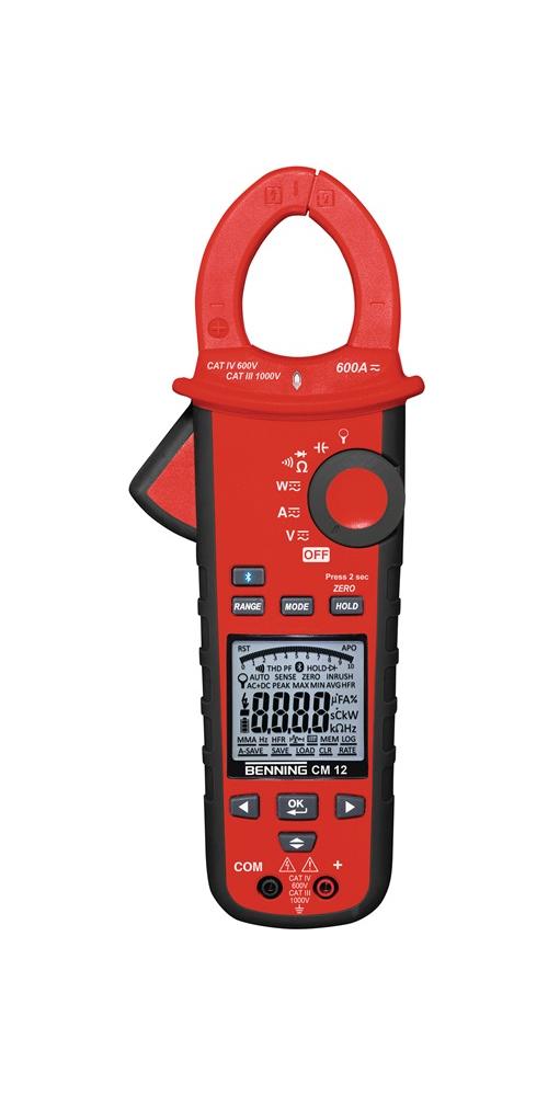 mit Logging-Funktion und Bluetooth®-Schnittstelle4-stellig beleuchtete LCD-Anzeige (9.999 Punkte) mit Bargraph · erweiterter Strommessbereich über optionalen flexiblen AC-Stromzangenwandler BENNING CFlex 1, (optionales Zubehör - gehört nicht zum Lieferumfang) Wechselstrombereich 300,0 A/ 3000 A · Datenlogger-Funktion LOG (9.999 Messwerte, Abtastrate: 1 s - 10 Min.) · Speicher-Funktion MEM (1.000 Messwerte, automatische Speicherfunktion A-SAVE) · Schnittstelle: Bluetooth® Low Energy 4.0 · kostenlose IOS- und Android APP zur Online Übertragung und Download des Datenloggers/Speichers · Leistungsanalyse in einphasige, dreiphasige und DC-Netze · Einschaltstrommessung (INRUSH) von Motoren und Beleuchtungsanlagen · Tiefpassfilter (Hochfrequenzunterdrückung HFR) für Messungen an Motorantrieben · THD-Messung (gesamte harmonische Verzerrung) der Oberschwingungen · Integrierter Voltsensor signalisiert berührungslos Phasenspannungen und Kabelbrüche in Leitungen (optisch) · automatische Messbereichs- und Funktionswahl · automatische Abschaltung (APO nach 15 min., deaktivierbar), Batterieunterspannungsanzeige · Messwertspeicher (HOLD), MAX-, Min-, Mittelwertspeicherung (MAX/ MIN/ AVG), Spitzenwertspeicher (PEAK-HOLD) · Messkategorie CAT IV 600 V, CAT III 1000 V