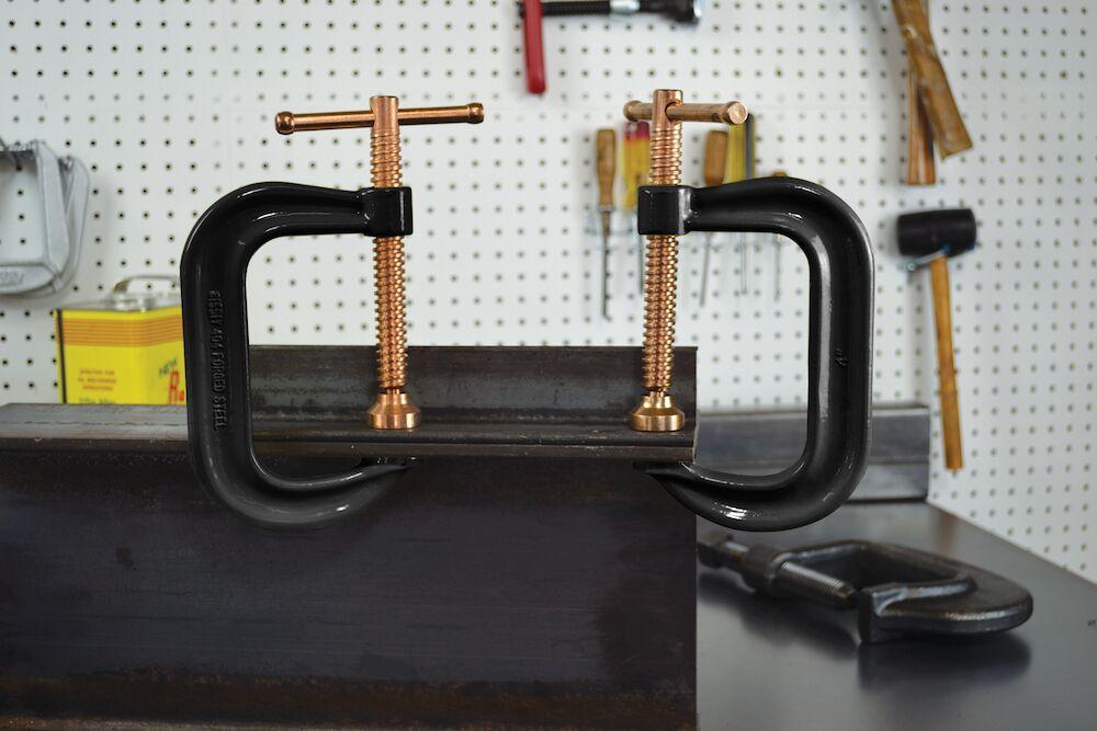 Metallbau Schlosserarbeiten Mit der Urform der Schraubzwinge spannen