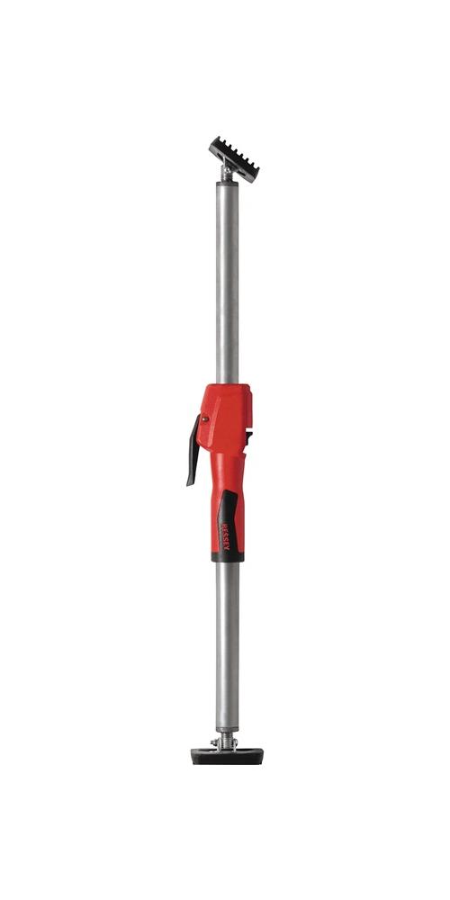 bis zu maximal 350 kg belastbar bei komplett eingefahrener Teleskopstange · äußerst stabile Konstruktion durch hochbelastbare Stahlrohre und rutschsichere PVC-Kontaktflächen (9 x 7 cm) · Einhandbedienung dank 2-Komponenten-Kunststoffgriff mit Pumpmechanismus · Schnellverschiebe-Taste zum schnellen Ein- und Ausfahren der Teleskopstange · regulierbare Haltekraft durch Drehen der Stütze am Griff · Einsatz auch in Schrägen durch stufenlos schwenkbare Kontaktflächen von -45° bis +45°Attribute