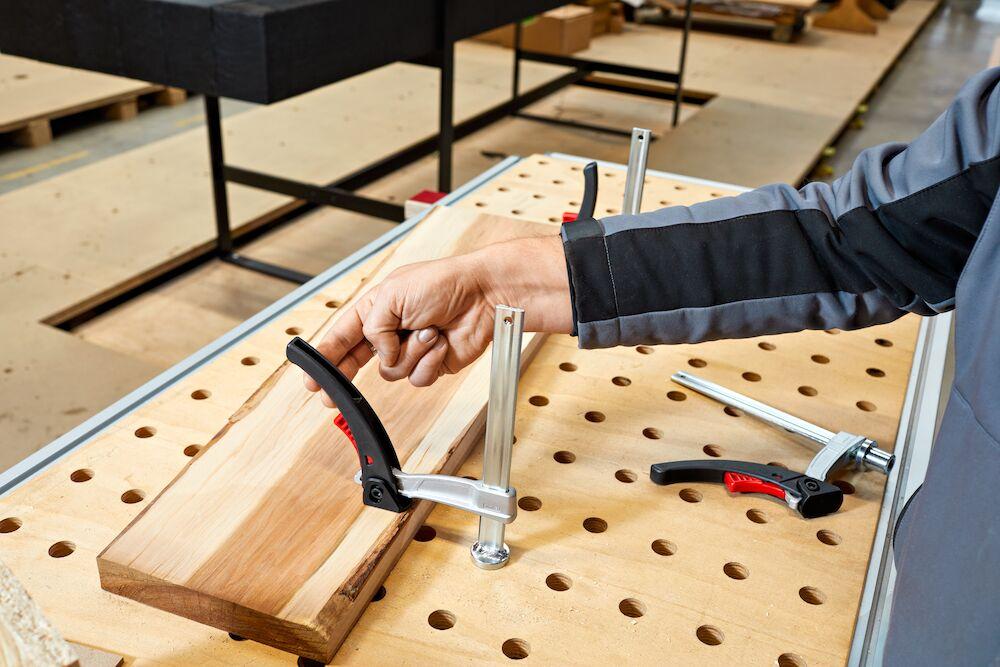 Die eigene Werkstatt immer dabei Spannwerkzeuge sind bei der Arbeit auf Multifunktionstischen unverzichtbar, und BESSEY hat dafür einige Spezialisten im Programm. Dazu zählen neben Tischzwingen in bewährter Ganzstahlqualität und variablen Schnellspannern mit speziellem Befestigungsadapter im Set auch eine spezielle Hightech-Hebelzwinge aus Magnesium für den Tisch sowie ein neues Waagrecht-Niederzugspanner-Set. So verschieden diese BESSEY Spannwerkzeuge mit ihren individuellen Stärken auch sind, alle zeichnen sich durch maximale Nutzerfreundlichkeit und stabile Bauweise aus. Mit diesen praktischen Helfern sind Handwerker auf jeder Baustelle gut ausgestattet, und es lässt sich schnell und präzise auf Multifunktionstischen arbeiten.