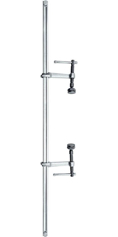 Werkzeuglos lösbare Endsicherung Die beidseitig angebrachten Endsicherungen sind werkzeuglos lösbar und erlauben das schnelle Umstecken der Gleitbügel zur Spreizfunktion. Aber auch der Tausch anderer oder die Ergänzung weiterer Gleitbügel ist problemlos möglich.