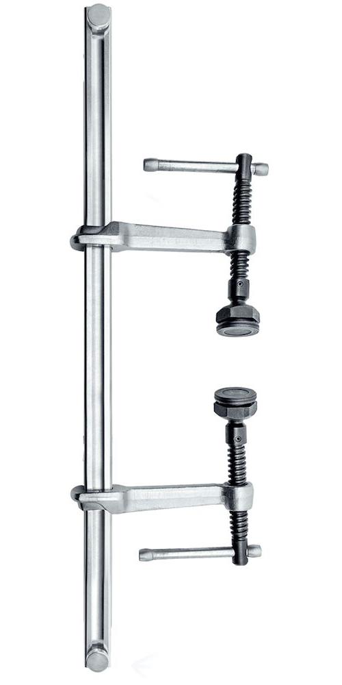 BESSEY bietet neben komplett montierten Hochleistungszwingen-Sets auch vielseitig miteinander kombinierbares Zubehör an. Dazu zählen zwei unterschiedliche Schienenmodelle: zum einen das Profil 27 x 13 mm in drei verschiedenen Längen, zum anderen das Profil 30 x 15 mm für Arbeiten mit hohen Spannkräften und Spannweiten bis drei Meter. Alle Schienen verfügen über beidseitig werkzeuglos lösbare Endsicherungen. Bereits aufgesteckte Gleitbügel können von Spannen auf Spreizen umgesteckt oder durch andere Gleitbügel ersetzt aber auch um weitere ergänzt werden. Erhältlich sind Gleitbügel mit Holz-, Hebel- oder Knebelgriff. Durch das Aufstecken unterschiedlichster Gleitbügel werden vielfältige und anspruchsvolle Spannaufgaben auf einfache und schnelle Weise gelöst. Der Individualität sind dabei keine Grenzen gesetzt.