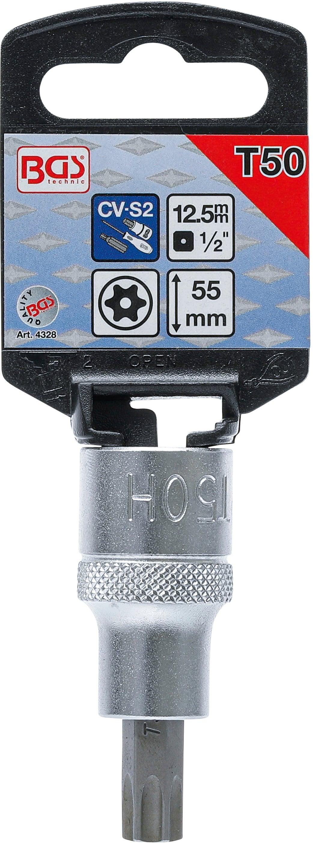 BGS Bit-Einsatz | Antrieb Innenvierkant 12,5 mm (1/2") | T-Profil (für Torx) mit Bohrung T50