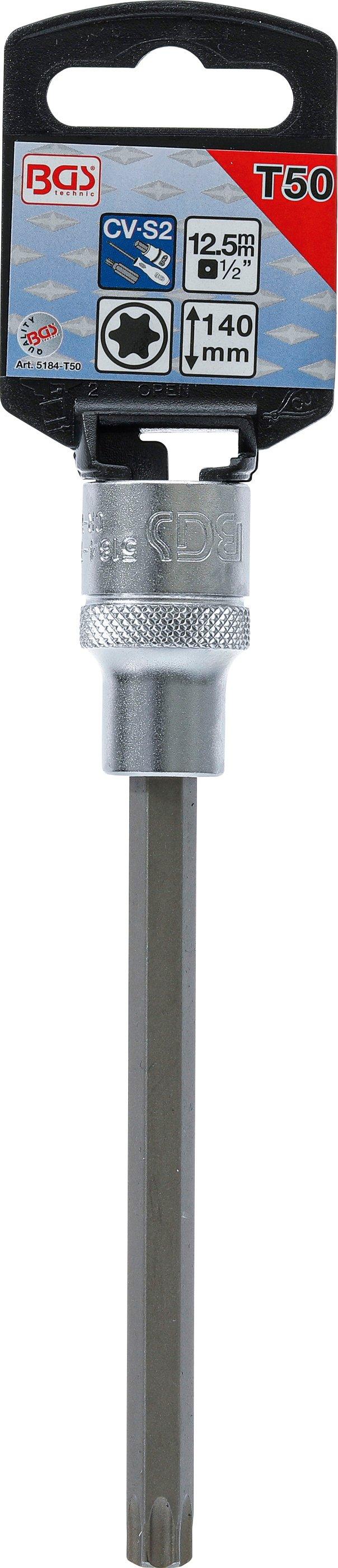 BGS Bit-Einsatz | Länge 140 mm | Antrieb Innenvierkant 12,5 mm (1/2") | T-Profil (für Torx) T50