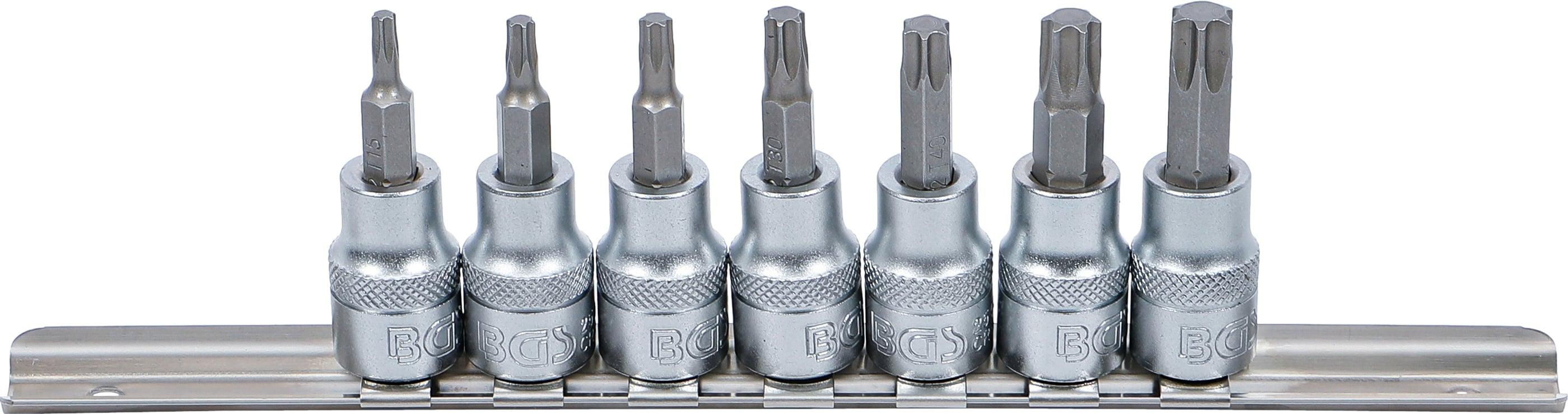 BGS Bit-Einsatz-Satz | Antrieb Innenvierkant 10 mm (3/8") | T-Profil (für Torx) T15 - T50 | 7-tlg.