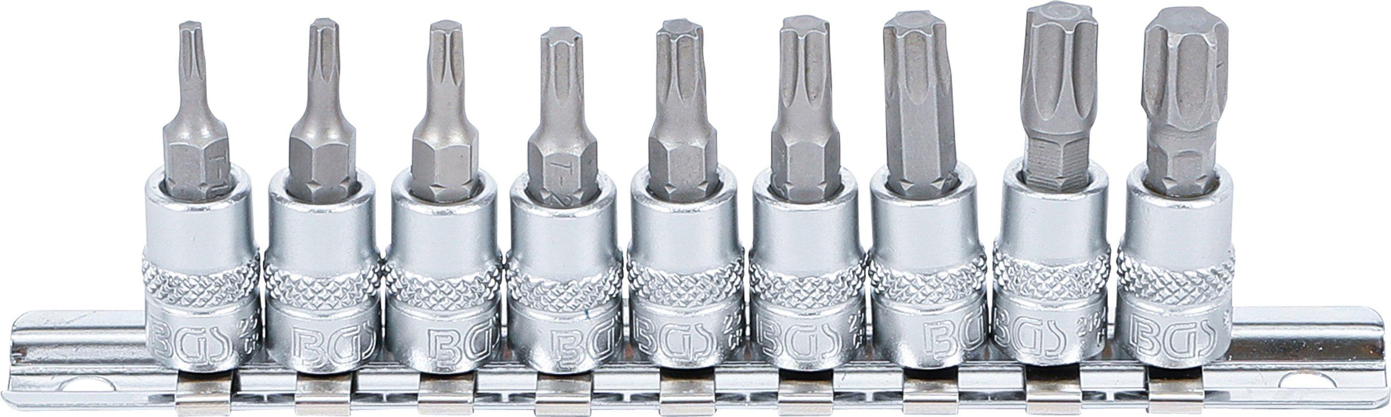 BGS Bit-Einsatz-Satz | Antrieb Innenvierkant 6,3 mm (1/4") | T-Profil (für Torx) T10 - T50 | 9-tlg.