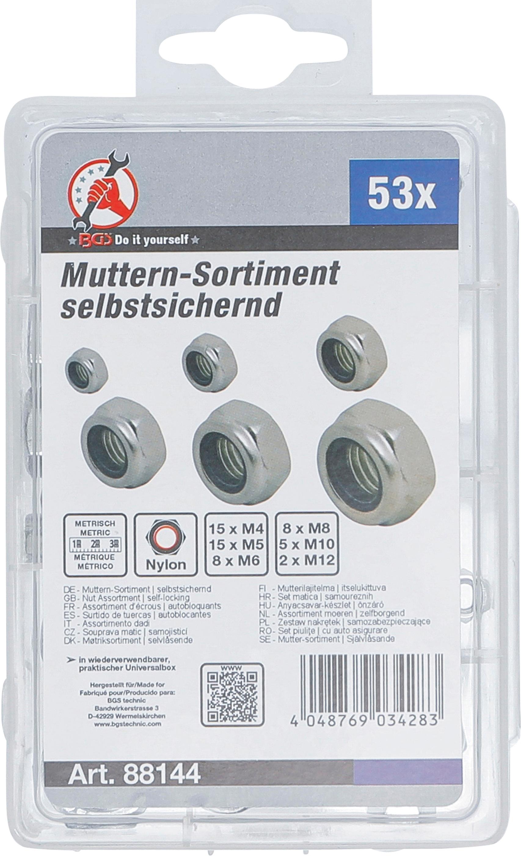 BGS Do It Yourself Muttern-Sortiment | selbstsichernd | metrisch | M4 - M12 | 53-tlg.