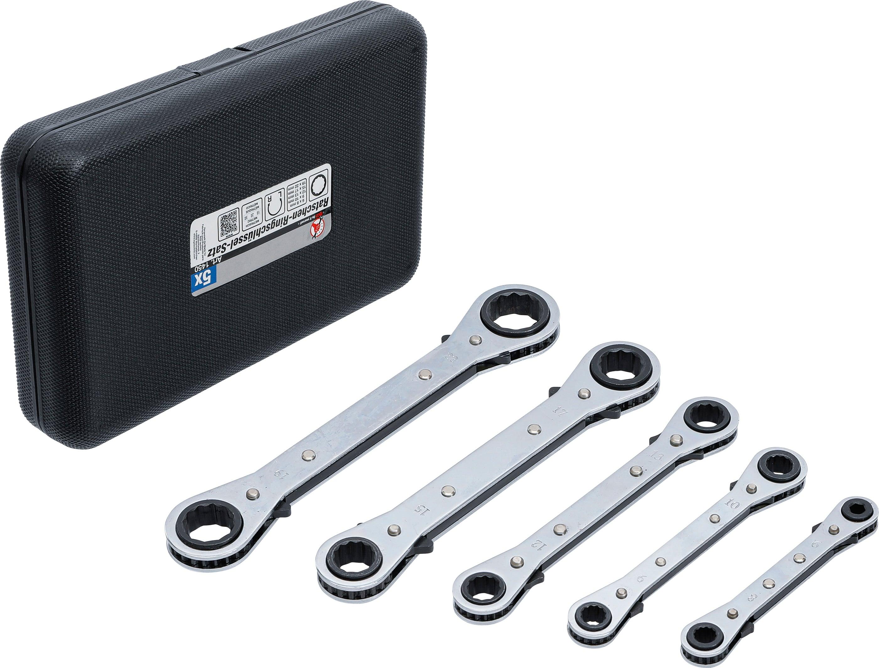 BGS Do It Yourself Ratschen-Ringschlüssel-Satz, gerade, umschaltbar | SW 6 x 8 - 19 x 22 mm | 5-tlg.