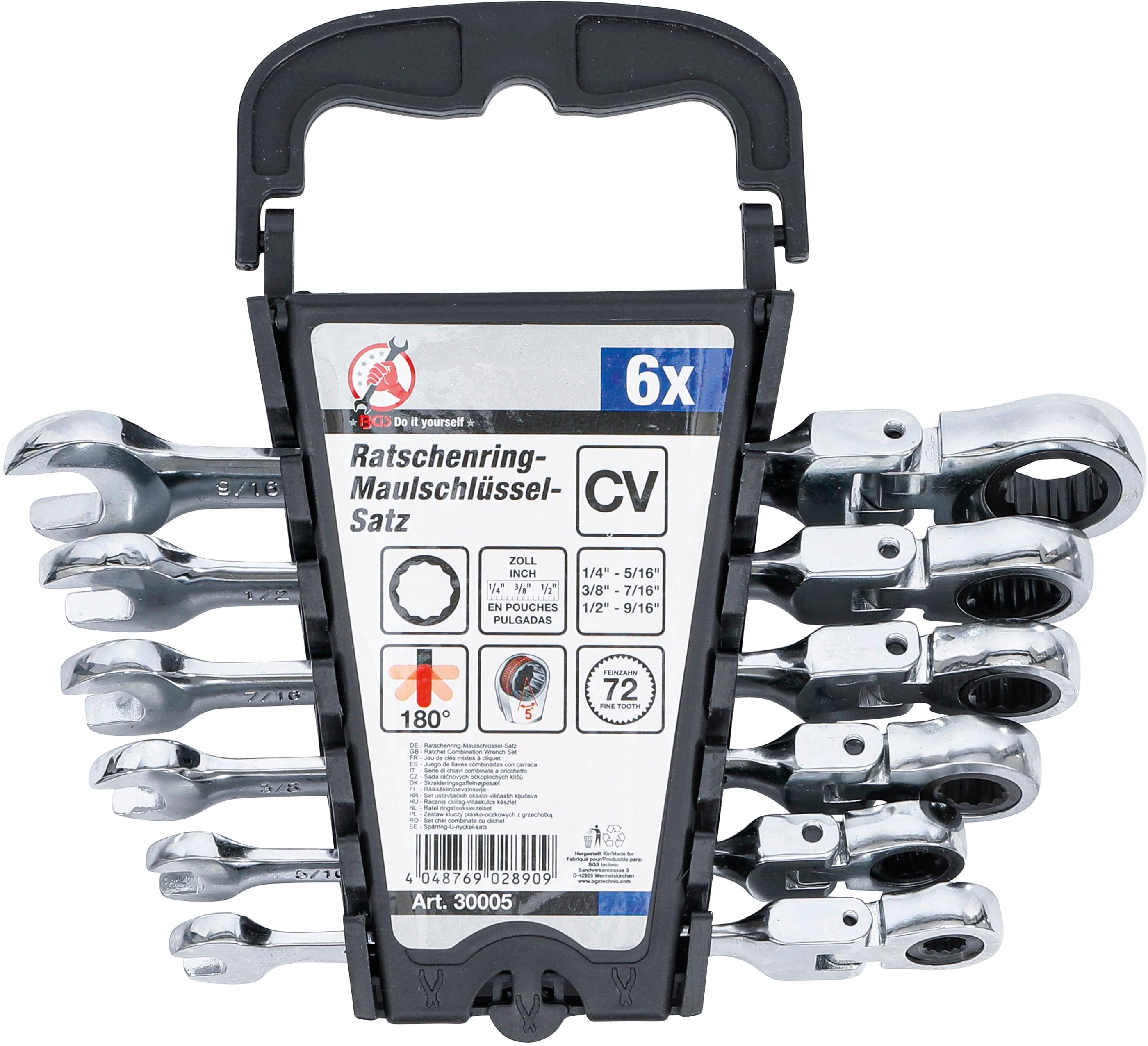 BGS Do It Yourself Ratschenring-Maulschlüssel-Satz | flexible Köpfe | Zollmaße | SW 1/4" - 9/16" | 6-tlg.