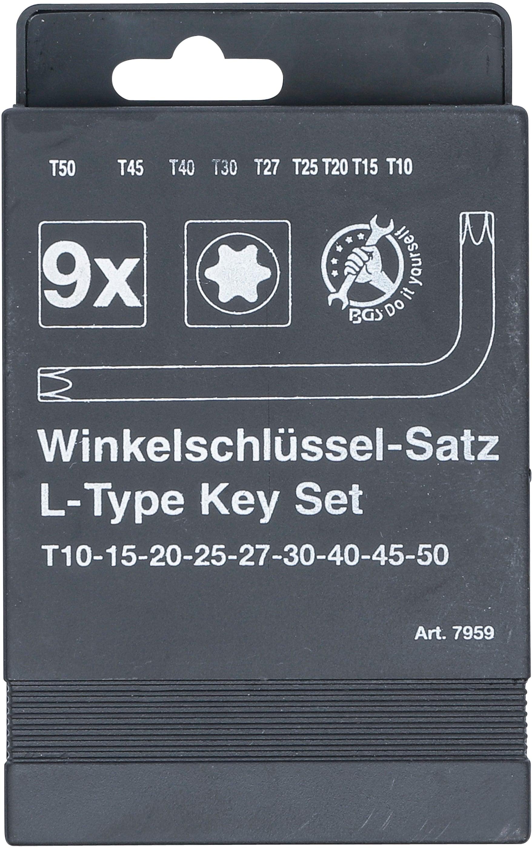 BGS Do It Yourself Winkelschlüssel-Satz | T-Profil (für Torx) T10 - T50 | 9-tlg.