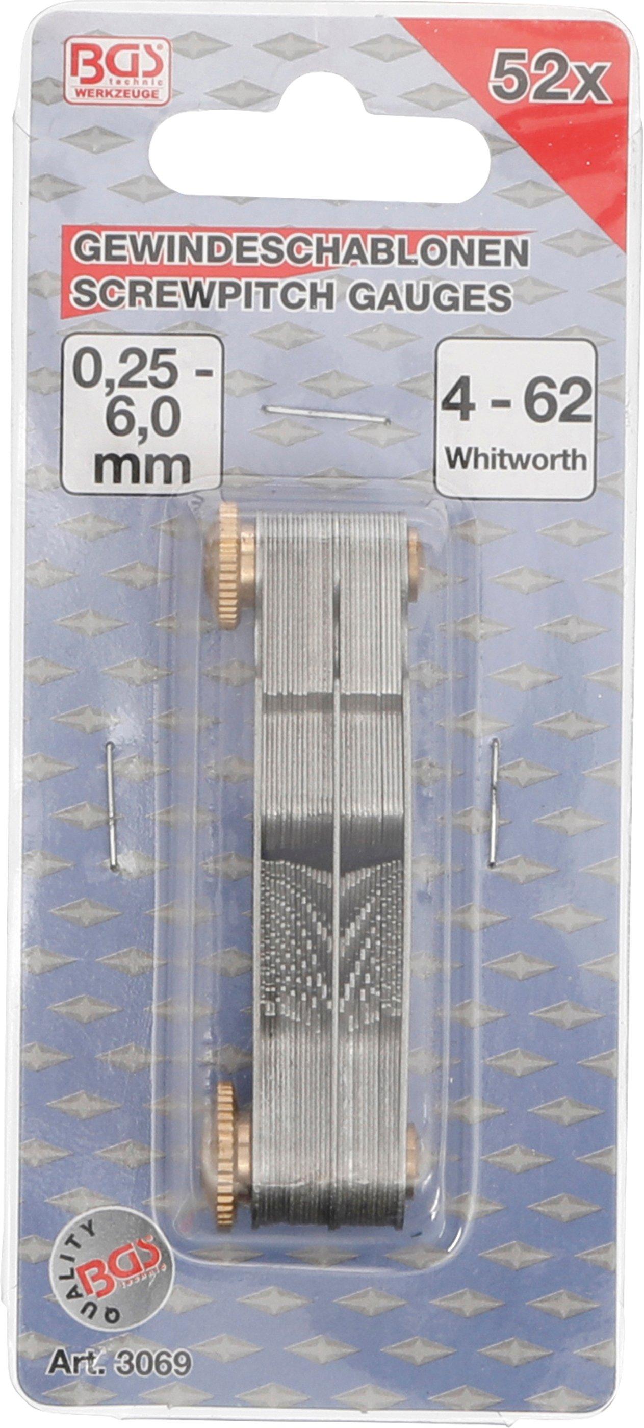 BGS Doppel-Gewindeschablone, 52 Blatt | metrisch 0,25 - 6,0 mm, Whitworth 4G - 62G