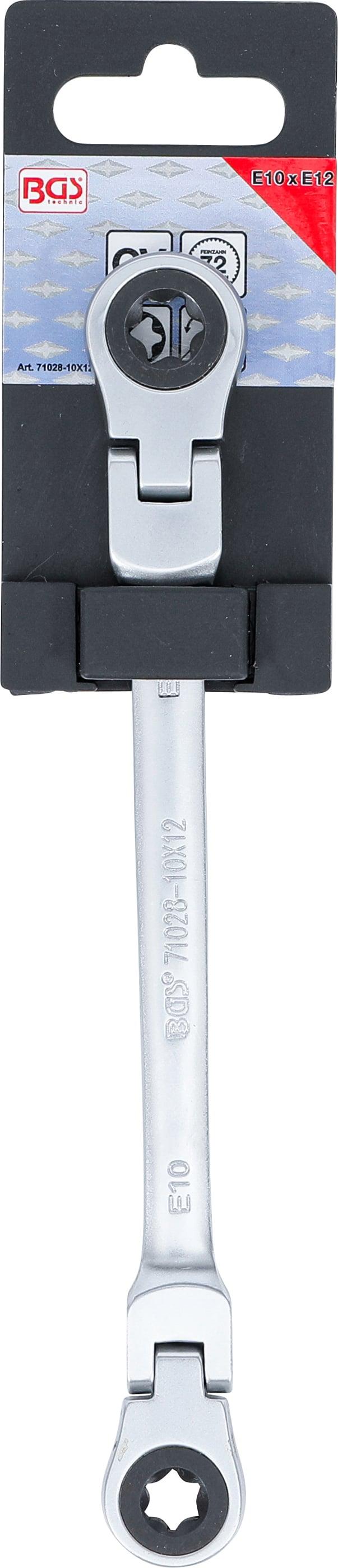 BGS Doppel-Ratschen-Ringschlüssel | abwinkelbar | mit E-Profil Ringköpfen | SW E10 x E12