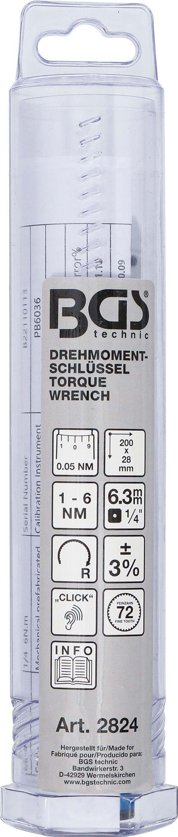 BGS Drehmomentschlüssel | Abtrieb Außenvierkant 6,3 mm (1/4") | 1 - 6 Nm