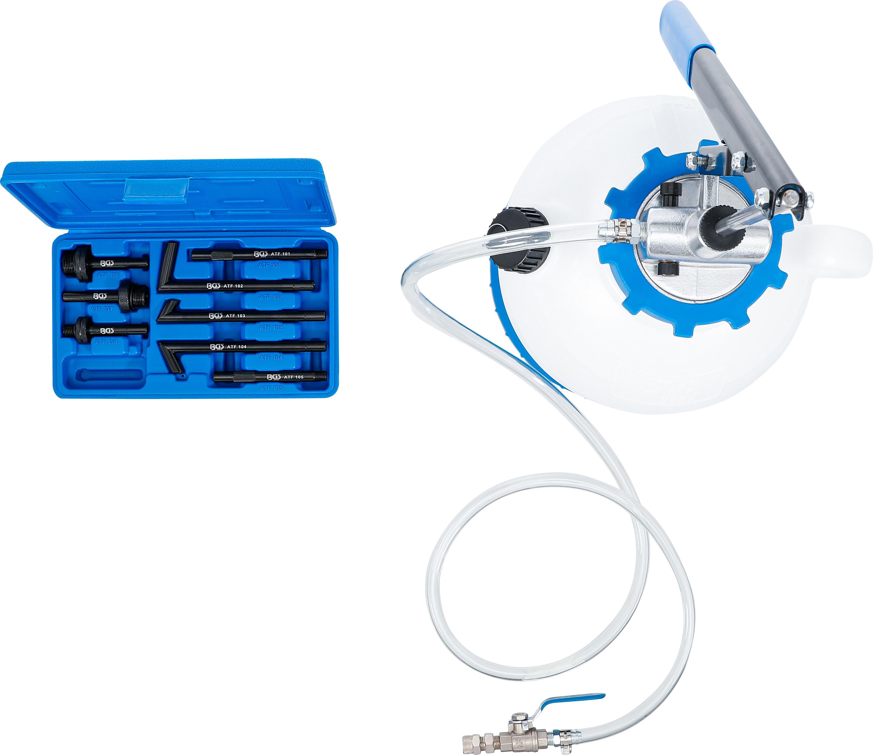 BGS Getriebeöl-Befüllgerät mit Handpumpe | mit 8 Adaptern | 7 l