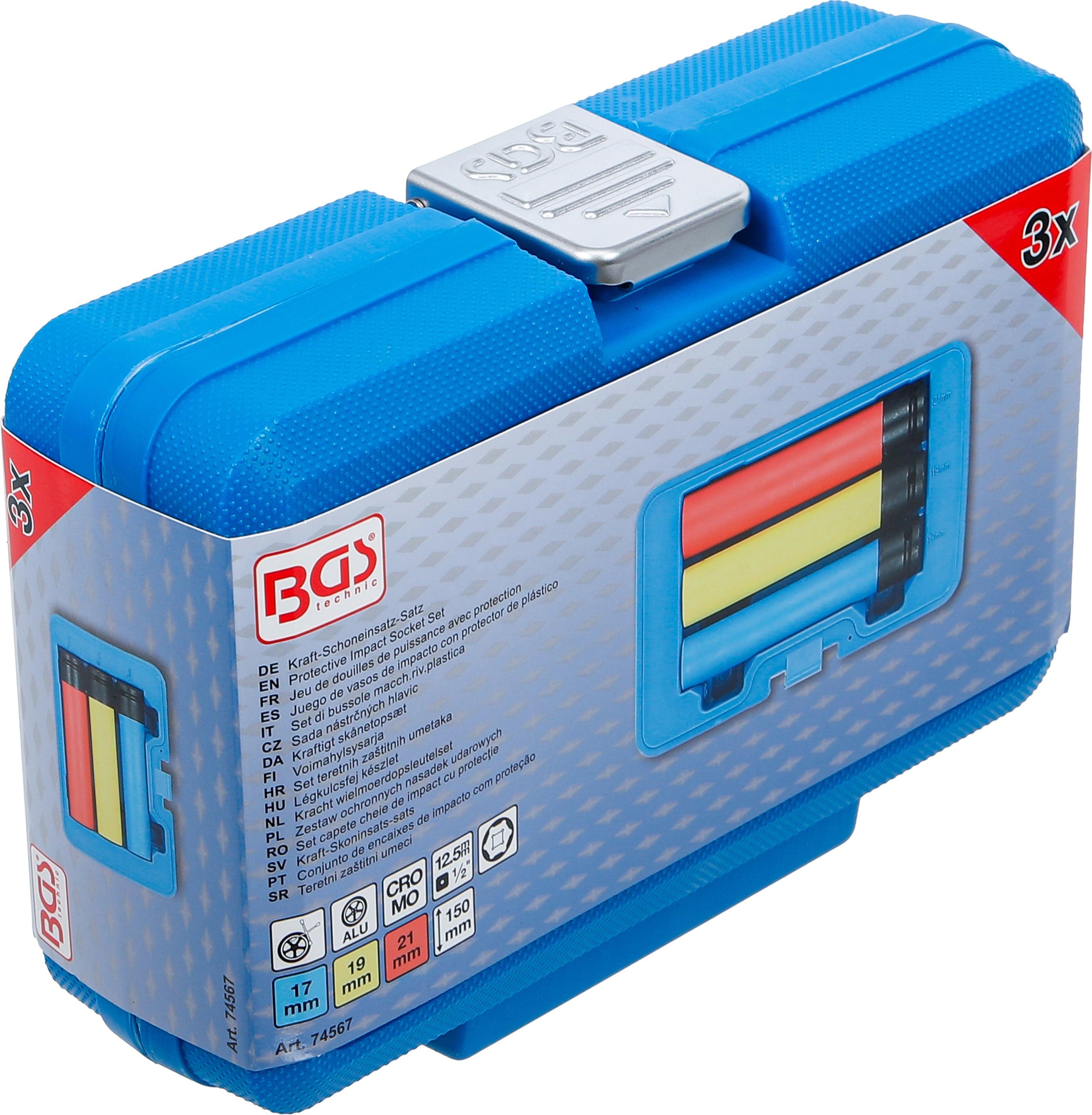 BGS Kraft-Schoneinsatz-Satz | extra tief | Antrieb Innenvierkant 12,5 mm (1/2") | SW 17 / 19 / 21 mm | 3-tlg.