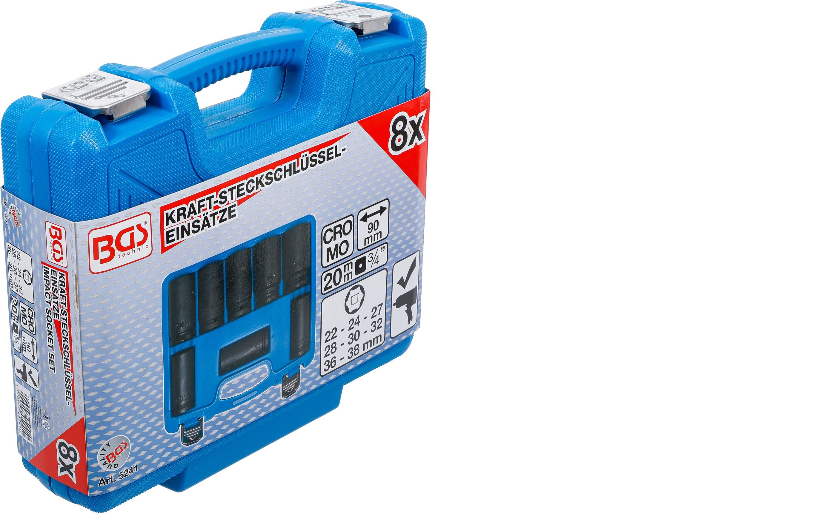 BGS Kraft-Steckschlüssel-Einsatz-Satz, extra tief | Antrieb Innenvierkant 20 mm (3/4") | SW 22 - 38 mm | 8-tlg.