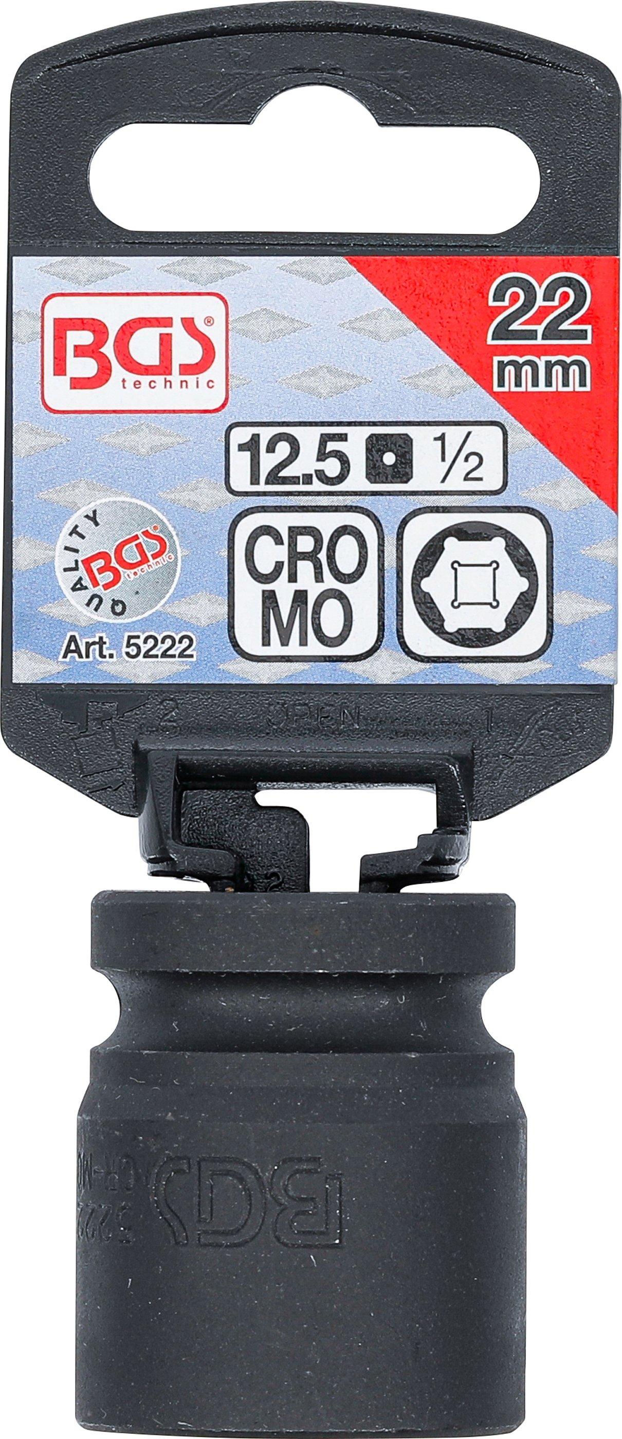 BGS Kraft-Steckschlüssel-Einsatz Sechskant | Antrieb Innenvierkant 12,5 mm (1/2") | SW 22 mm