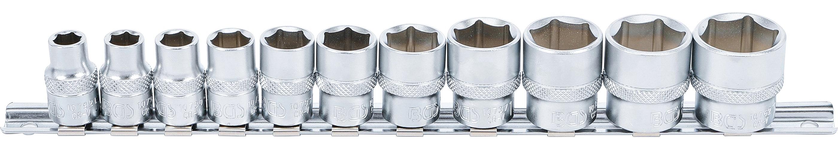 BGS Steckschlüssel-Einsatz-Satz, Sechskant | Antrieb Innenvierkant 10 mm (3/8") | SW 5/16" - 7/8" | 11-tlg.