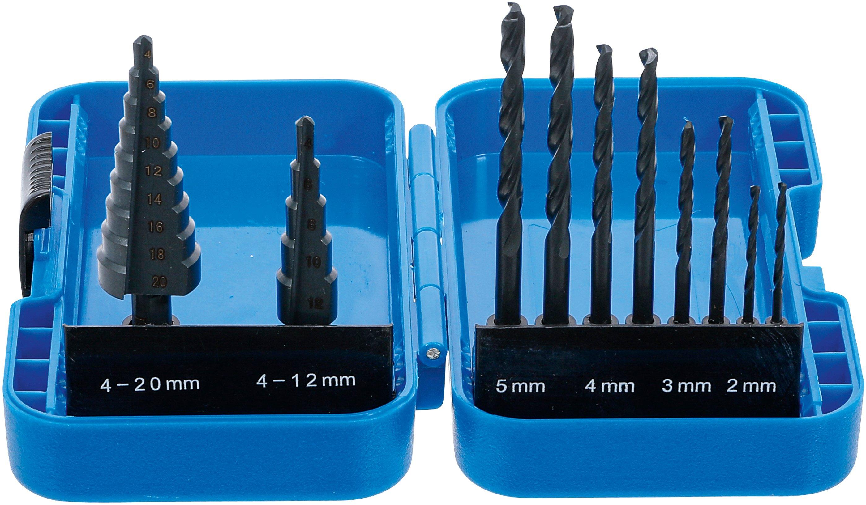 BGS Stufenbohrer- und Spiralbohrer-Satz | HSS | 4 - 12 / 4 - 20 mm | 2 - 5 mm | 10-tlg.