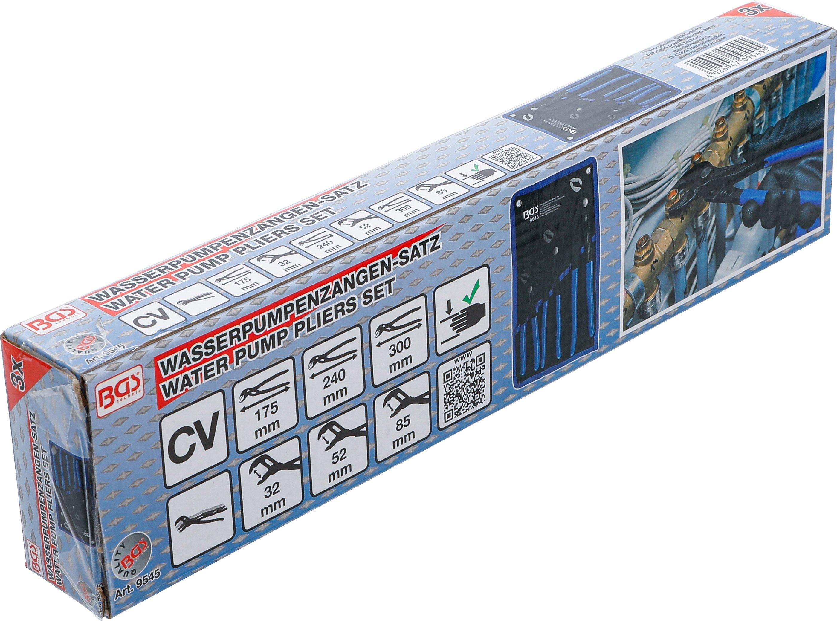 BGS Wasserpumpenzangen-Satz | arretierbar | 175 / 240 / 300 mm | 3-tlg.