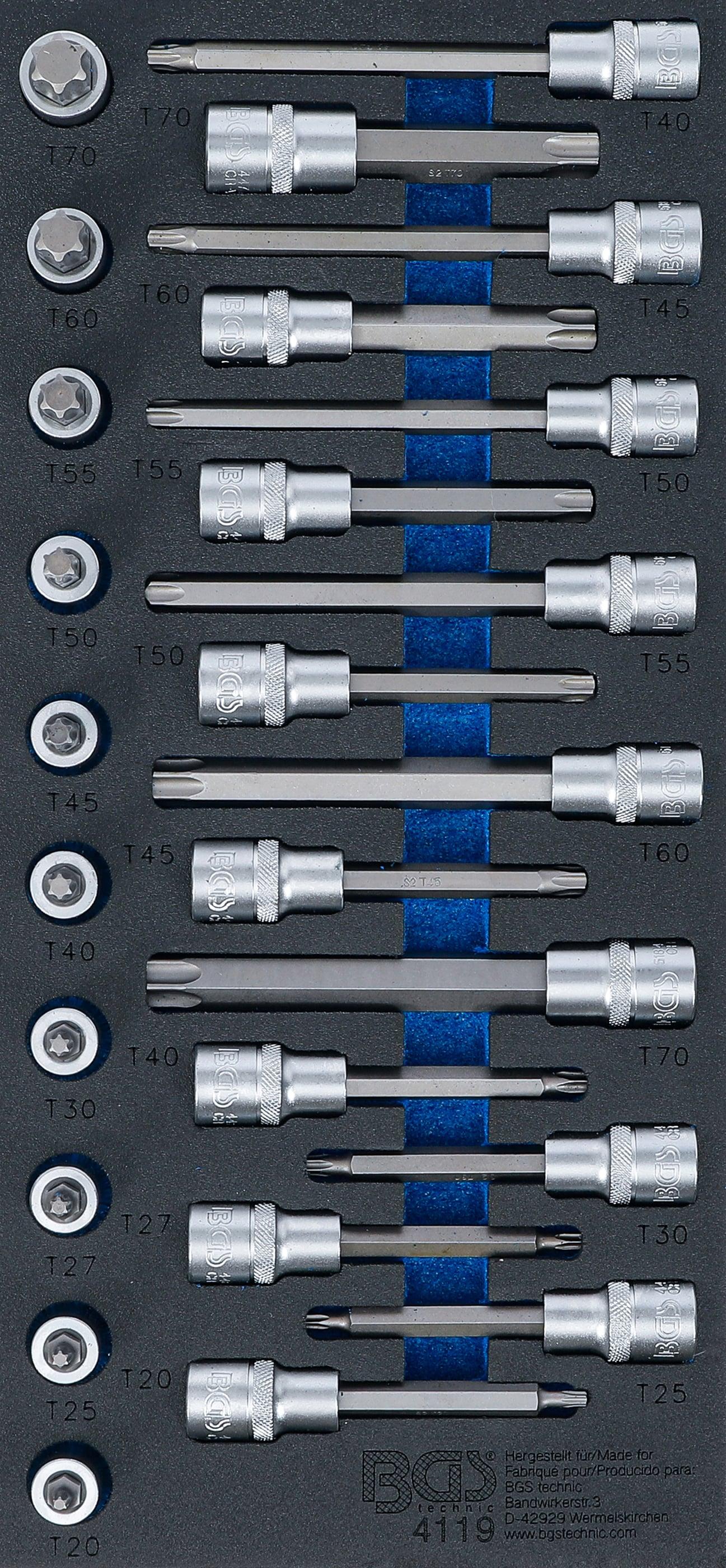 BGS Werkstattwageneinlage 1/3: Bit-Einsatz-Satz | Antrieb Innenvierkant 12,5 mm (1/2") | T-Profil (für Torx) | 26-tlg.