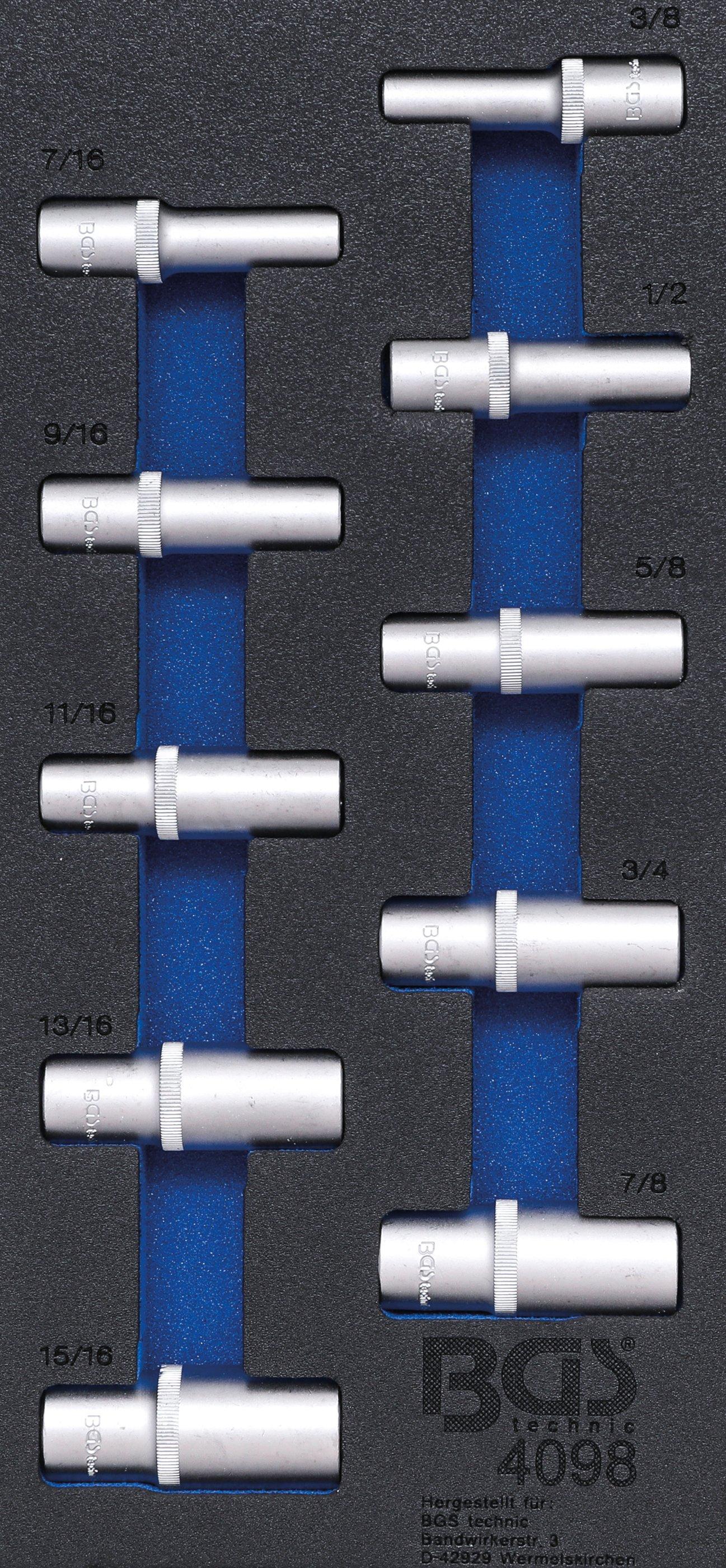 BGS Werkstattwageneinlage 1/3: Steckschlüssel-Einsätze Sechskant | 12,5 mm (1/2") | in Zollgrößen | tief | 10-tlg.