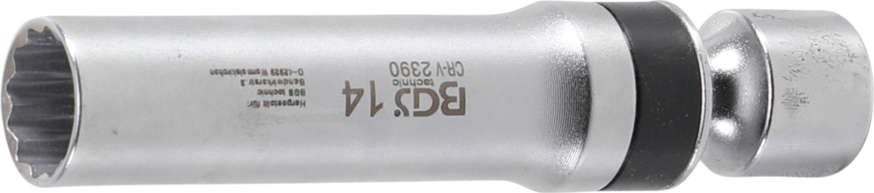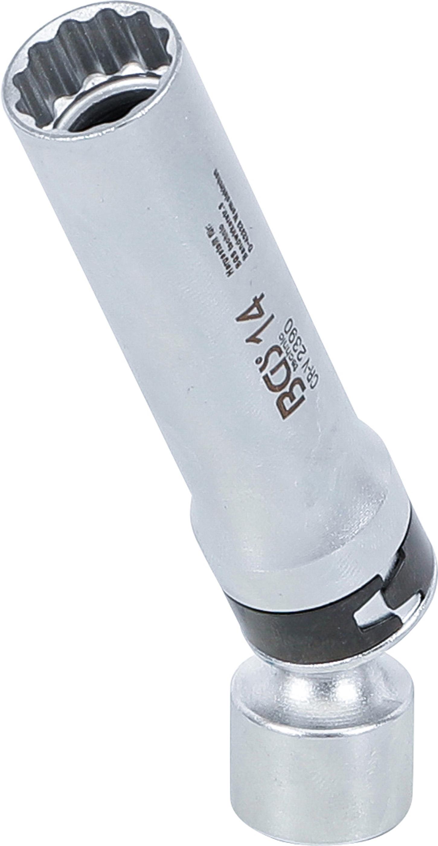 BGS Zündkerzen-Gelenkeinsatz Zwölfkant mit Haltefeder | Antrieb Innenvierkant 10 mm (3/8") | SW 14 mm