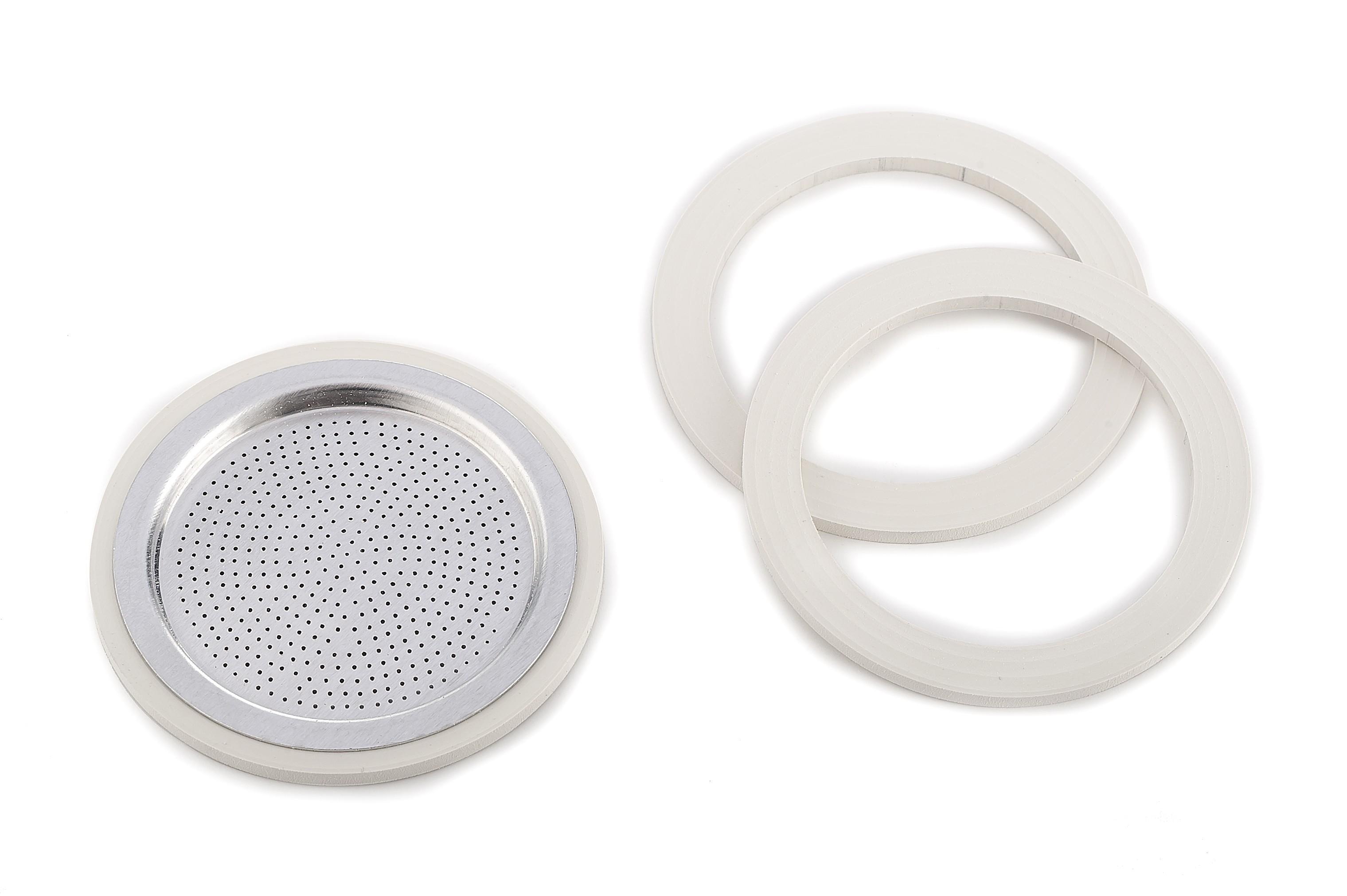 3 Dichtungsringe + 1 Filtersieb für Aluminium Espressokocher 6 Tassen, Außendurchmesser Dichtungsringe: 72 mmAttribute
