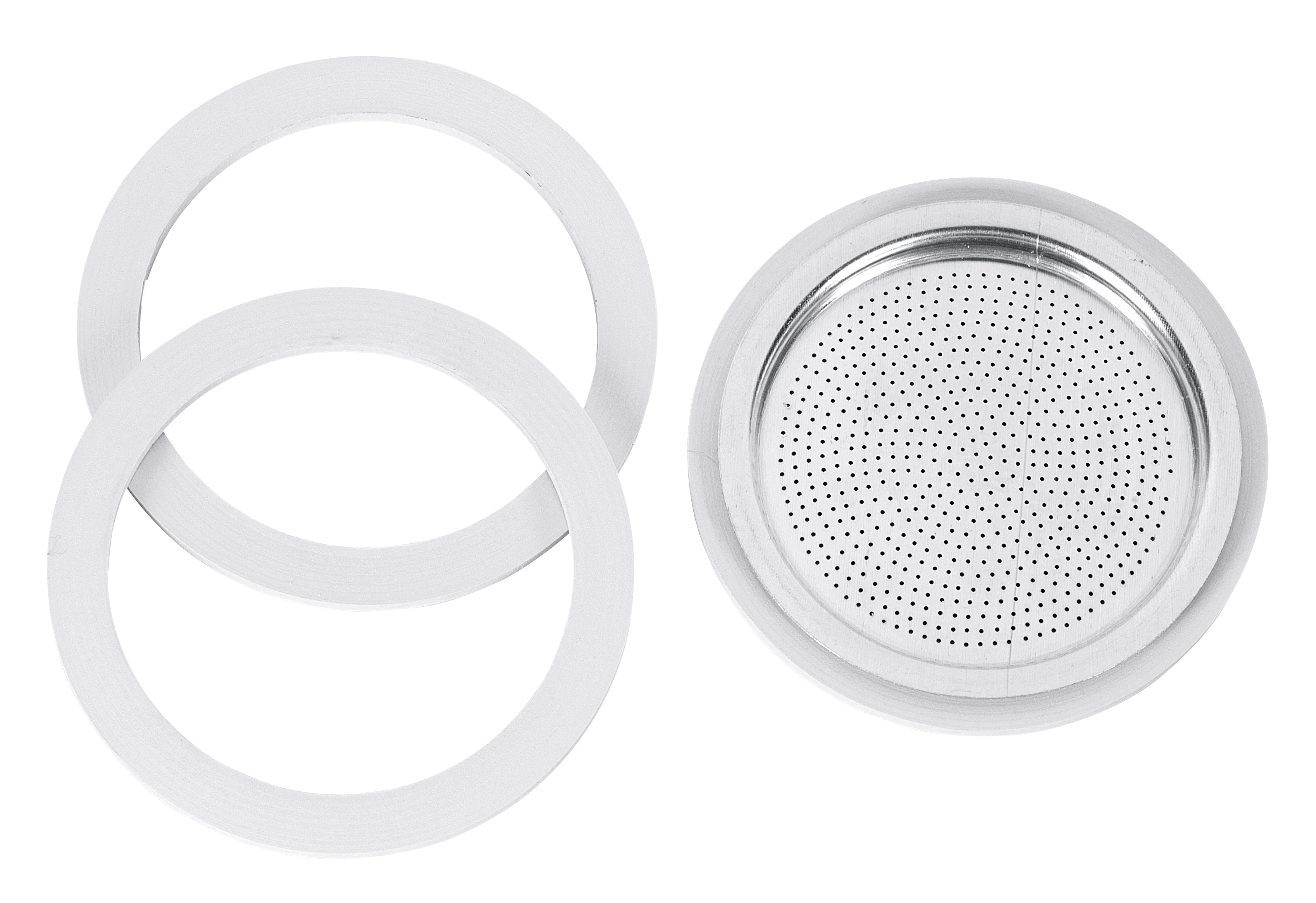 Ersatzdichtung / -filter-Set 4-teilig, für Aluminium Espressobereiter 9 Tassen, Inhalt: 1 Filter und 3 Silikondichtungen.Lieferumfang: