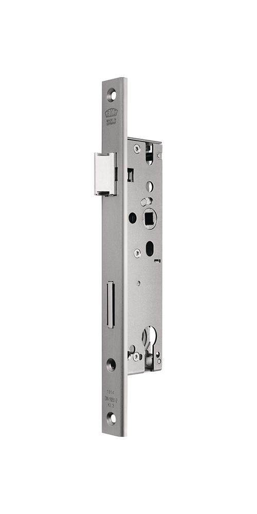 für einflügelige Türen · mit Langloch zur Befestigung · DIN links und rechts verwendbar durch umstellbare Falle · zugelassen nach DIN 18251-2 Klasse 3 · Falle und Riegel aus Zink-Druckguss · 20 mm Riegelausschluss, 1-tourig · Stulp nickel-silber lackiert · PZ · Entfernung 92 mm · 10 mm Vierkant ·mit Wechsel