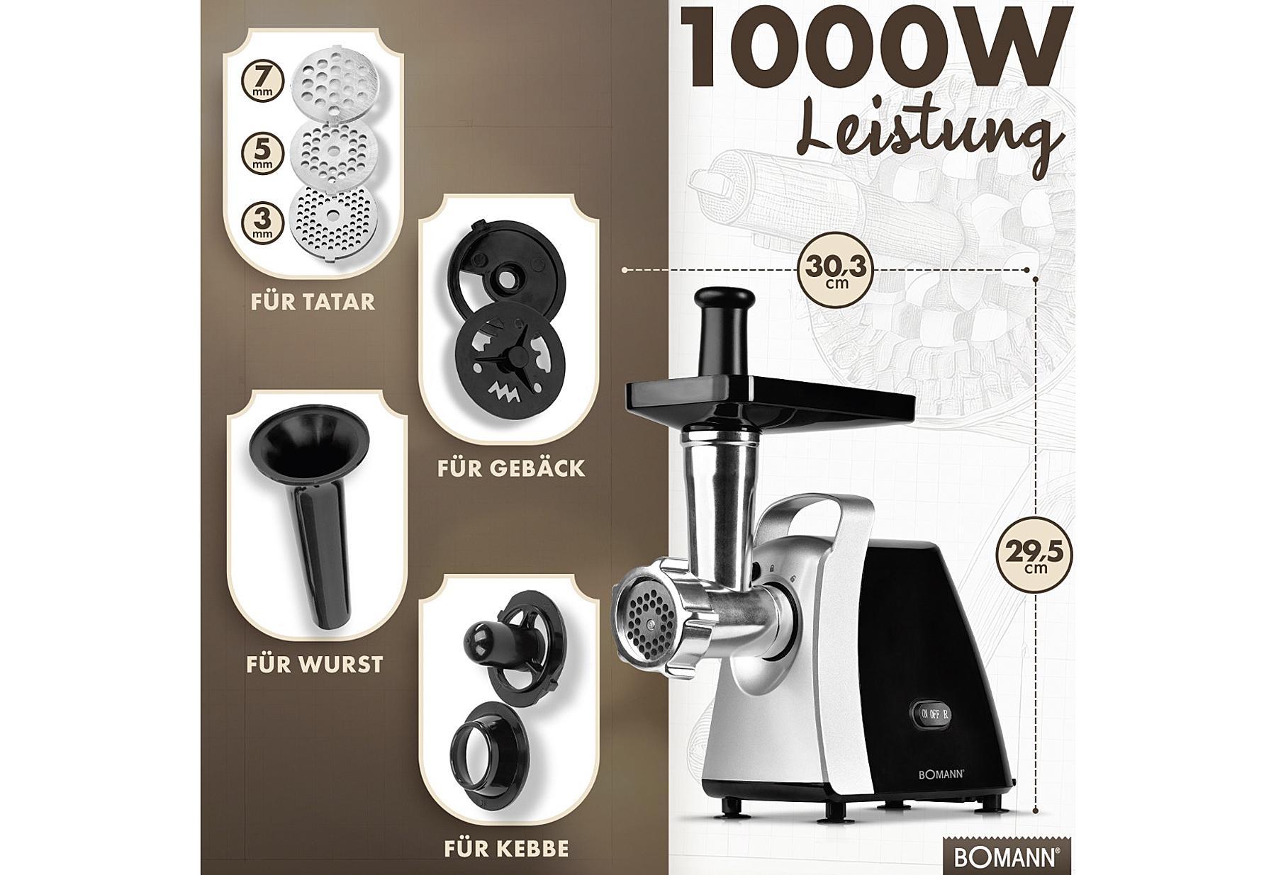 Der Bomann Fleischwolf FW 6067 CB ist ein leistungsstarkes Gerät, das Ihnen das schnelle Verarbeiten von großen Mengen Fleisch und Fisch ermöglicht. Mit der Vor- und Rücklauffunktion ist die Zubereitung von Hack (Tatar), Kebbe und Wurst ein Kinderspiel. Dank des drehbaren Einfülltabletts und des robusten Metallhalses ist die Handhabung mühelos. Die Maschine wird mit 3 Metall-Lochscheiben (fein, mittel, grob) und einem 4-flügeligen Edelstahlmesser geliefert, sodass Sie die gewünschte Konsistenz leicht erreichen können. Zusätzlich enthält sie einen Kebbeaufsatz für die orientalische Küche, einen Plätzchen-/Gebäckaufsatz für köstliches Spritzgebäck und einen Wurstfülleraufsatz. Der Bomann Fleischwolf FW 6067 CB steht sicher auf Ihrer Arbeitsfläche dank der Saugfüße und ist einfach zu transportieren, dank des Tragegriffs. Mit 1000 W max. Leistung ist er leistungsstark genug, um Ihre Küchenaufgaben mühelos zu bewältigen.
