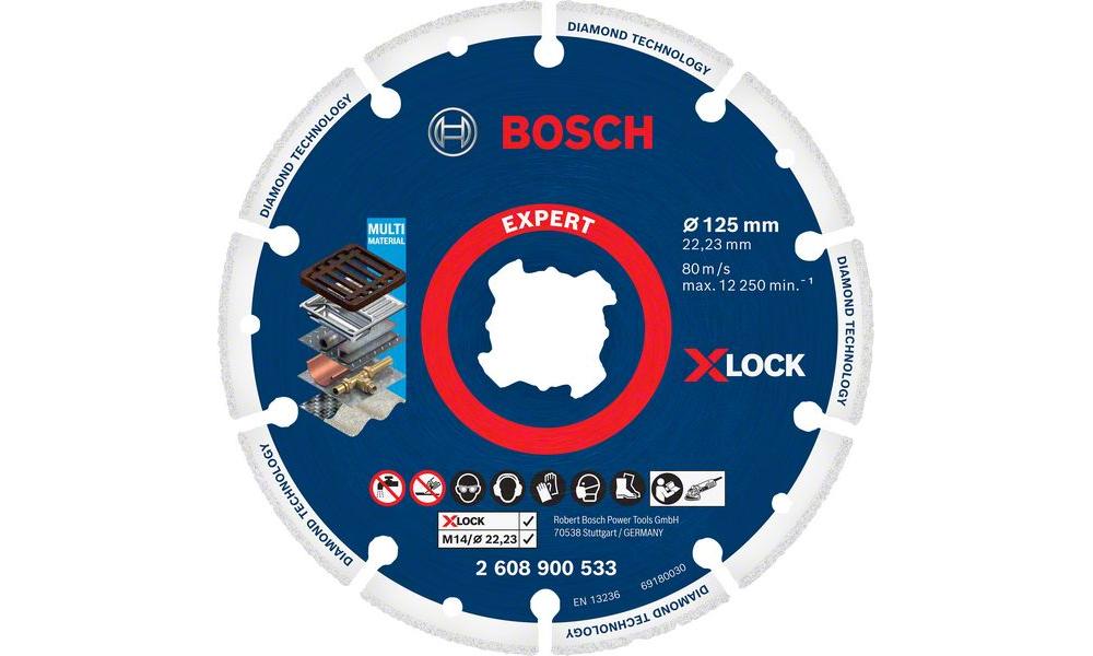 Die X-LOCK Diamant-Metallscheibe hat beim Schneiden von Metall eine bis zu 100 Mal längere Lebensdauer. Ihr Stahlkörper mit Diamantschneidekante ist äußerst robust und die Scheibe behält während seiner langen Lebensdauer die gleiche Schnitttiefe und eine konstante Geschwindigkeit bei. Dank der Diamanttechnologie von Bosch splittert die Scheibe auch bei versehentlichem Herunterfallen nicht. Sie erzeugt beim Schneiden keinen chemischen Geruch oder zusätzlichen Staub. Sie ist zum Schneiden von Metallen wie Stahl, Gusseisen, Edelstahl und Kupfer vorgesehen. Diamant-Metallscheiben von Bosch erfüllen die höchsten Sicherheitsanforderungen, wie z. B. EN 13236. Sie zeichnet sich durch erhöhte Sicherheit und gesundes Schneiden aus. X-LOCK Diamant-Metallscheiben passen auch auf Standard-Winkelschleifer Dank schlüssellosem X-LOCK System lassen sich die Scheiben schnell und bequem wechseln. Durchmesser mm: 125, Bohrungsdurchmesser mm: 22,23, X-LOCKAttribute