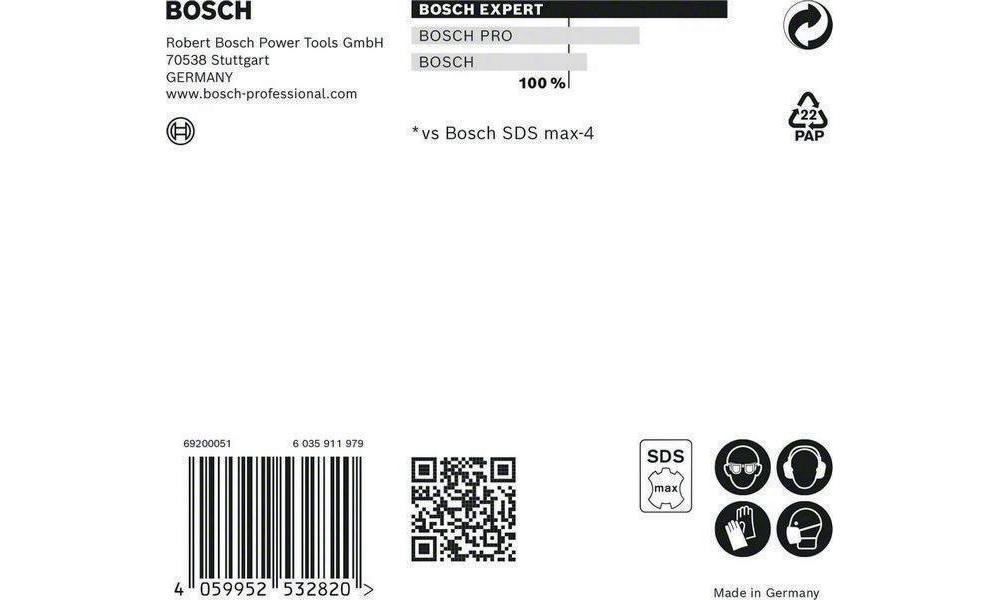 Bosch Carbide-Technologie für langlebiges Bohren von Stahlbeton · dringt effektiv durch die Armierung, sodass man nicht stoppen, neu zielen oder den Bohrer wechseln muss, wenn man auf Stahl stößt · passend für SDS max BohrhämmerAttribute