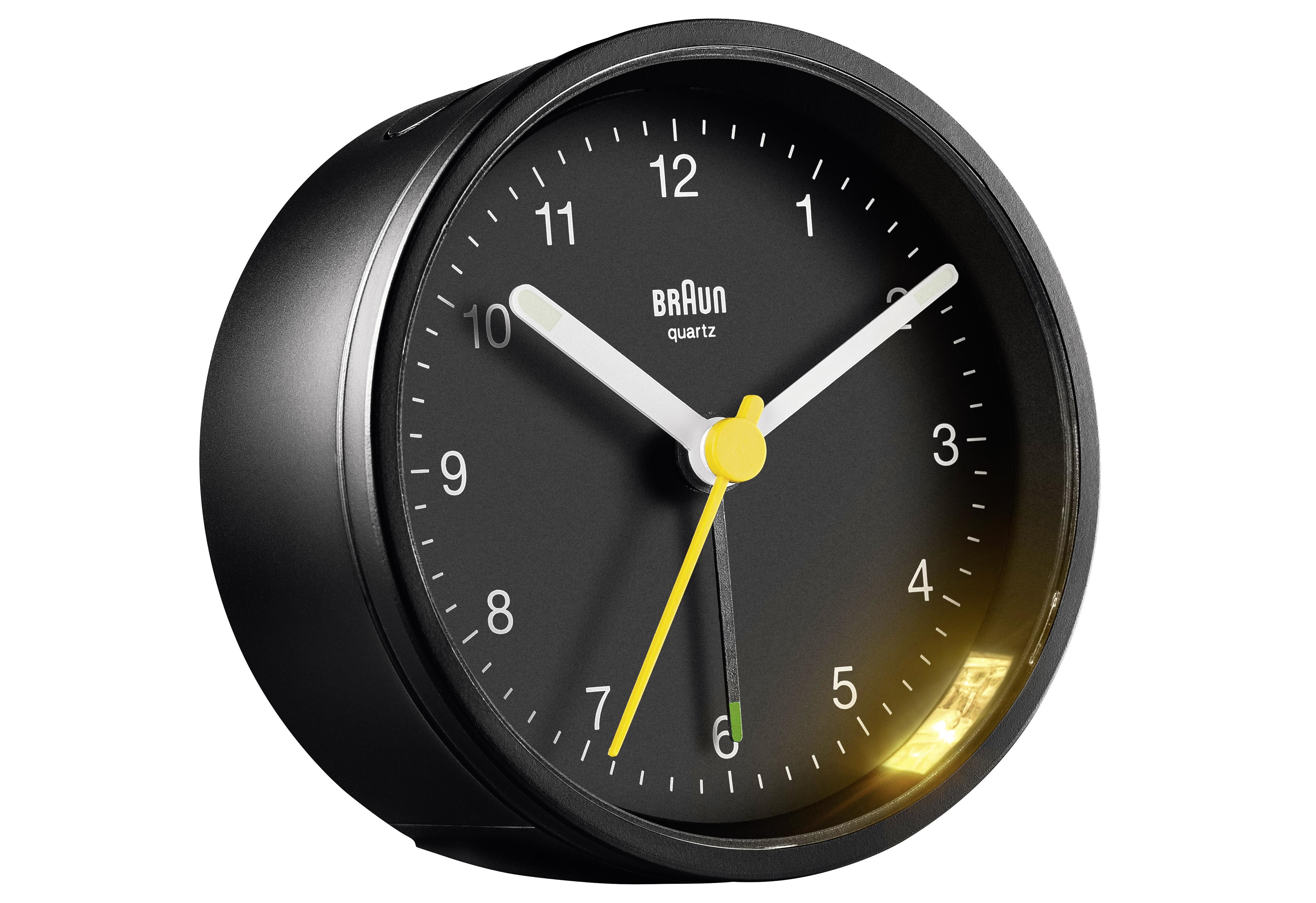 Quarzwecker, mit hoher Präzision, Crescendo-Alarm, leises Laufwerk, Weckwiederholung, gut lesbares Zifferblat, Leuchtzeiger, Beleuchtung mit einer Dauer von 5 Sekunden, Gehäuse und Zifferblat in schwarz , Maße: 7,6 x 7,6 x 3,4 cm, benötigt wird 1 x AA Mignon Batterie (nicht enthalten)Attribute