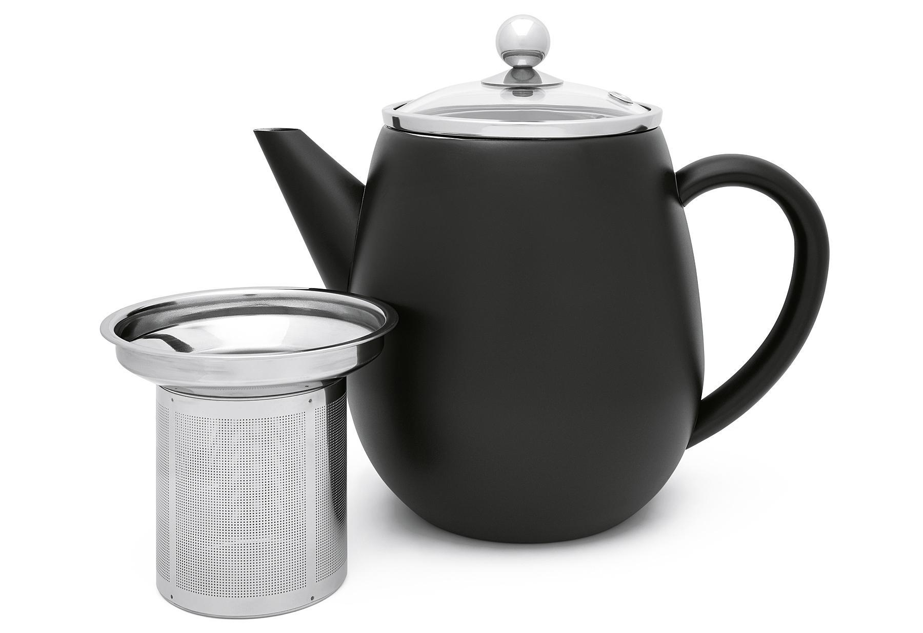 Die Teekanne Eva verfügt über eine doppelte Isolierwand. Der Tee bleibt hierdurch eine Dreiviertelstunde bis zu einer Stunde lang heiß und geschmackvoll (wenn die Teekanne mindestens bis zu 90 % gefüllt ist). Die Tülle hat ein besonderes Design und tropft beim Einschenken nicht. Der Griff und Deckelknopf werden allenfalls handwarm. Die Teekanne Eva ist in den Varianten Edelstahl matt und matt-schwarz erhältlich.Attribute