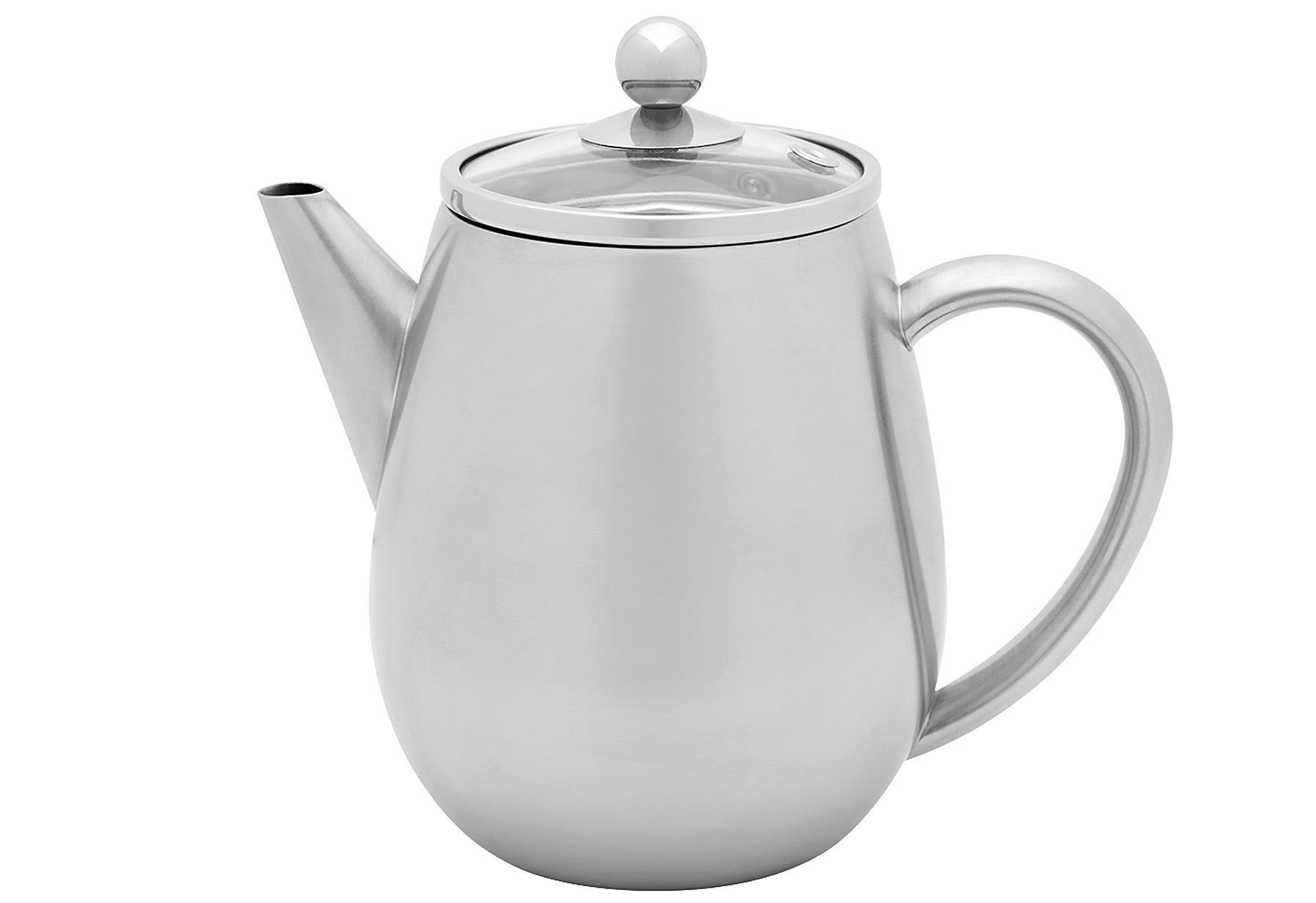 Bredemeijer Teekanne "Duet Eva", doppelwandige Edelstahl Teekanne mit Edelstahl Filter. Außen in poliertem Edelstahl " shiny finish", der Deckel aus Edelstahl und Glas. Maße: 0,5 l, (LxBxH). 11x16,5x19 cm.