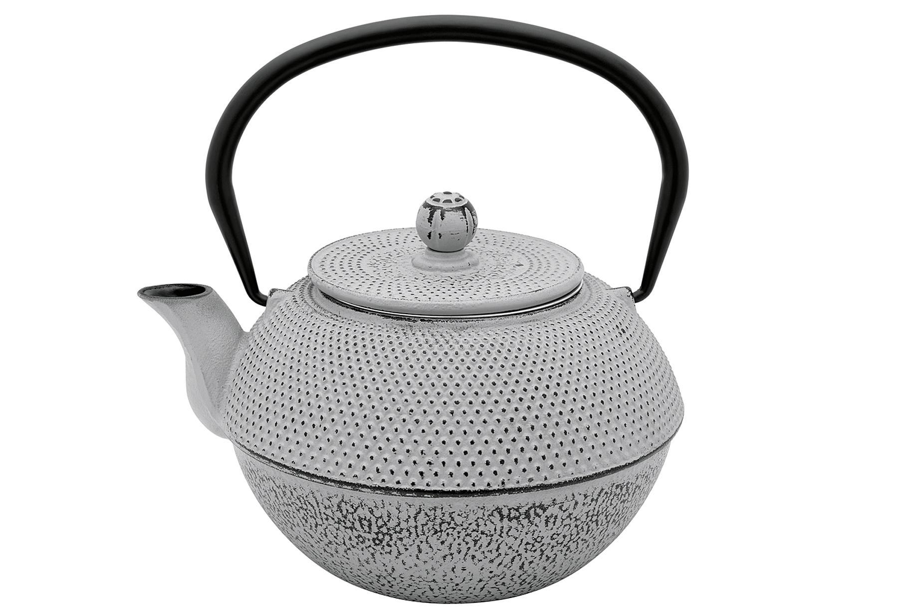 Teekanne Jang in betongrau. Die Außenseite der Kanne ist mit einer Noppenstruktur versehen, die Innenseite ist emailliert. Die gusseiserne Teekanne hat ein Fassungsvermögen von 1,1 Litern. Passende Becher sind erhältlich.Lieferumfang: