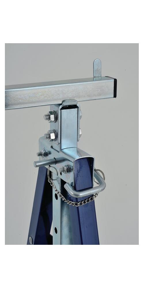 höhenverstellbar bis 1310 mm · Auflage mit ausklappbarer seitlicher Abrutschsicherung · stabiles, standfestes Stahl-Vierkantrohr, schlag- und kratzfeste Kunststoffbeschichtung, zusammenklappbar · zerlegte AnlieferungWeitere technische Eigenschaften: