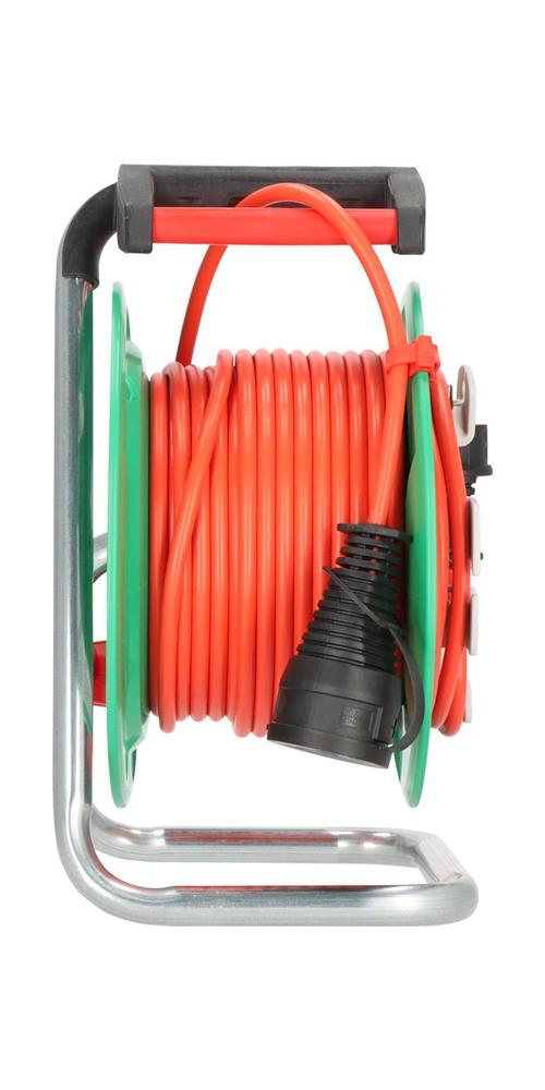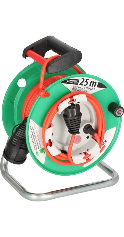 Die Garant® G IP44 Gartenkabeltrommel mit 25m Kabel in signalrot von Brennenstuhl überzeugt durch ihre Qualität und Sicherheit in allen Bereichen. Die Kabeltrommel eignet sich ideal für die vorübergehende und zeitlich begrenzte Verwendung im Freien und überzeugt außerdem durch folgende Eigenschaften: Kabeltrommel mit 2m Kabel zum Anschluss der Trommel am Speisepunkt Praktische Kabelhalterung und Steckergarage zum schnellen Verstauen des Kabels Trommelkörper aus Spezialkunststoff auf verzinktem Tragegestell Ergonomischer Handgriff mit Achse für perfekte Kabelführung beim Auf- und Abrollen Mit Drehgriff für komfortables Aufrollen Überhitzungsschutz · Kontroll-Leuchte bei Überhitzung und Überlastung Kabellänge: 23+2m Kabelbezeichnung: H05VV-F3G1.5Weitere technische Eigenschaften: